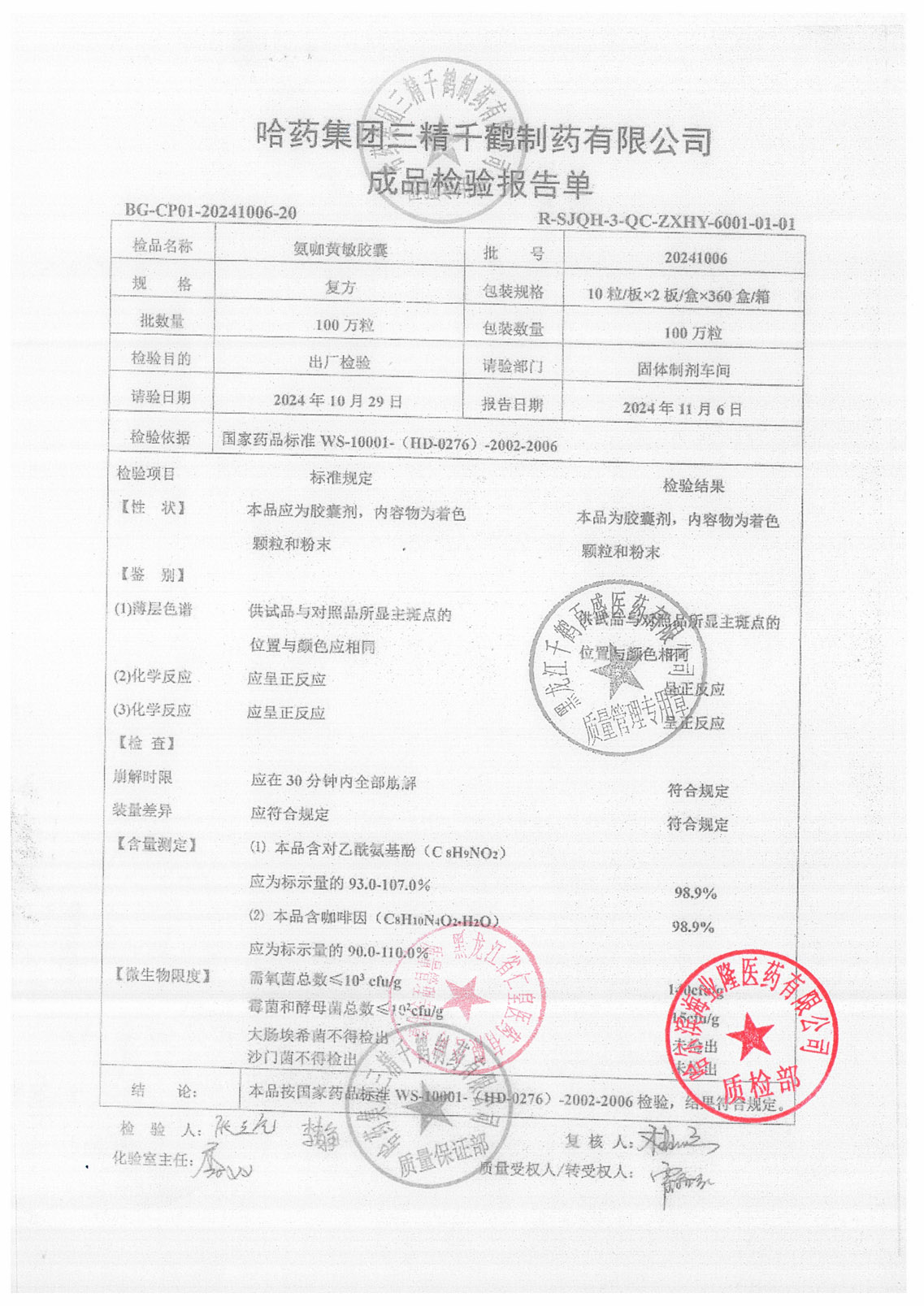 氨咖黃敏膠囊2024