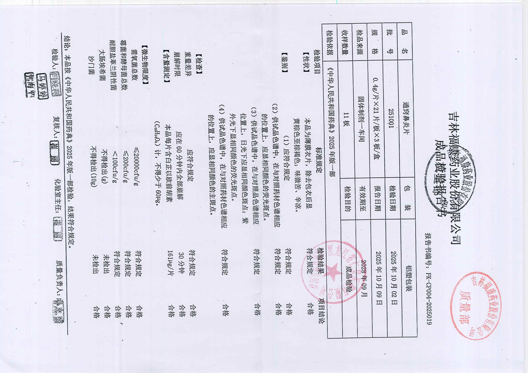 通竅鼻炎片25100