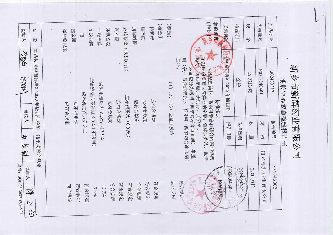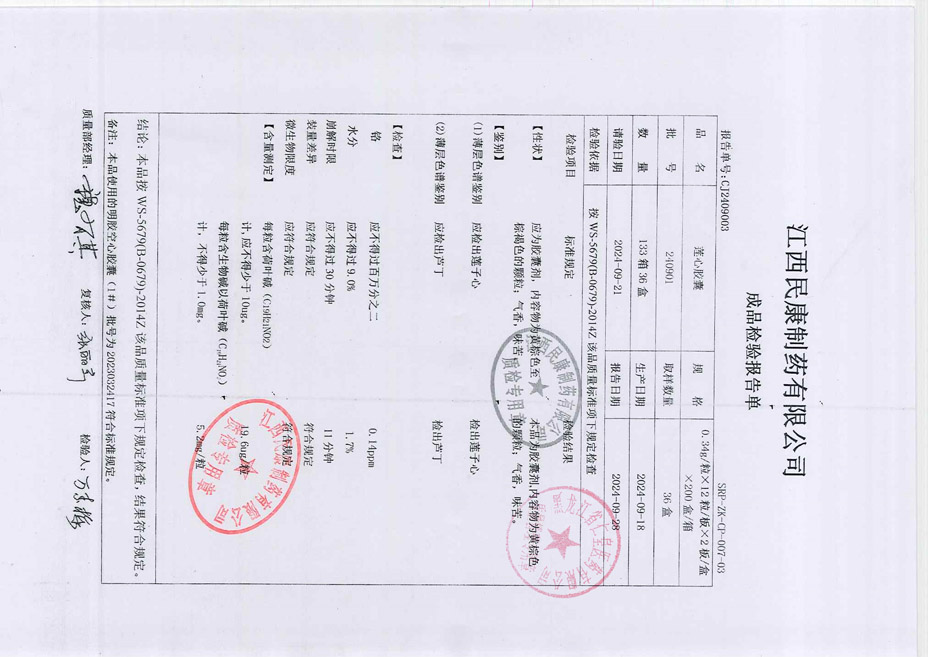 明膠空心膠囊檢驗單-