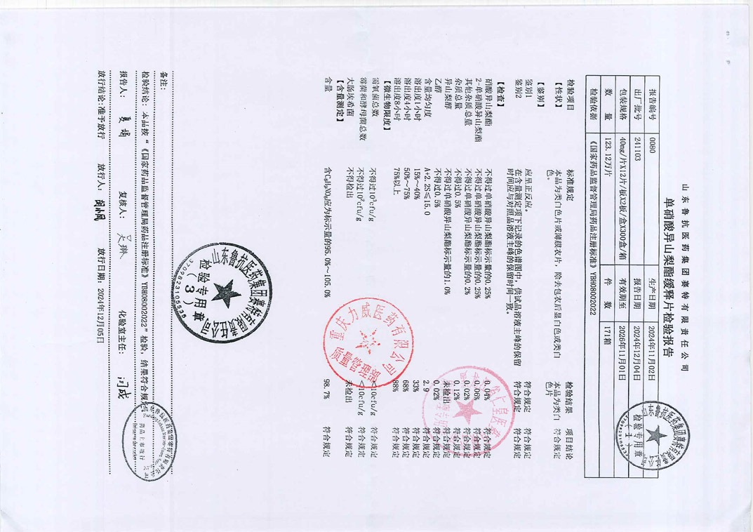 單硝酸異山梨酯緩釋片