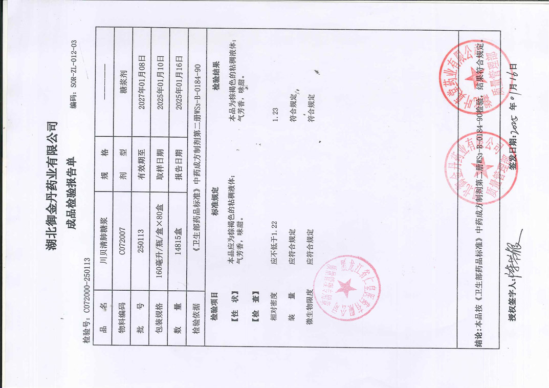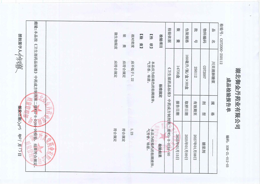 川貝清肺糖漿2501
