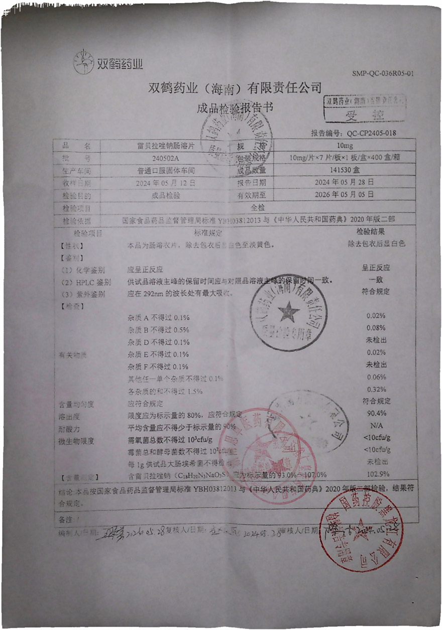 雷貝拉唑鈉腸溶片24