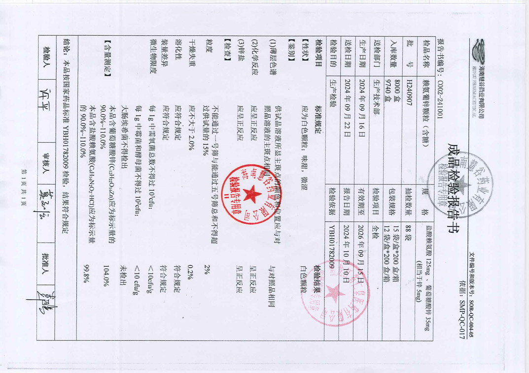 賴氨葡鋅顆粒H240