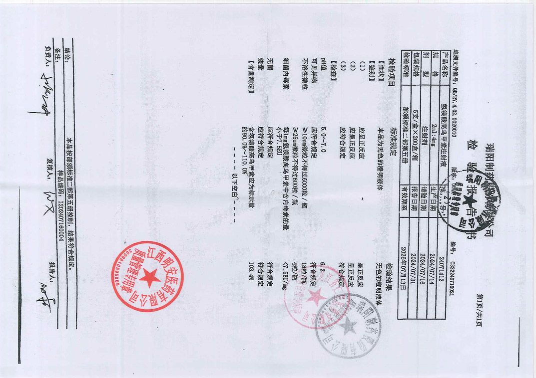 氫溴酸高烏甲素注射液