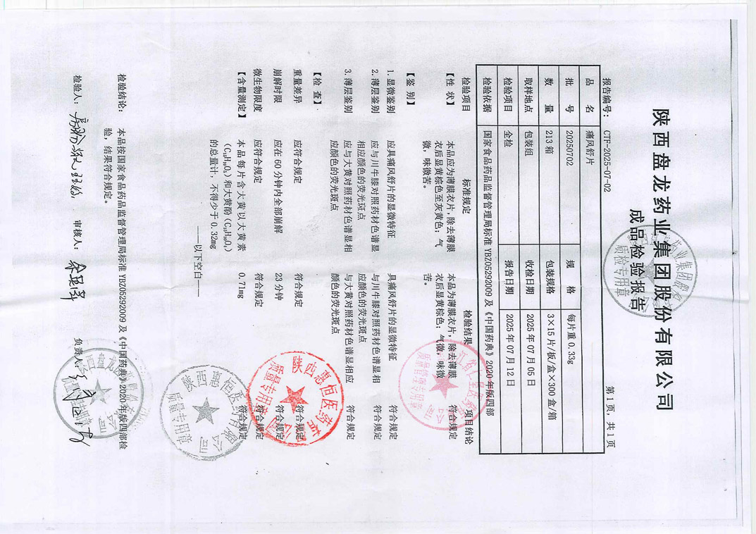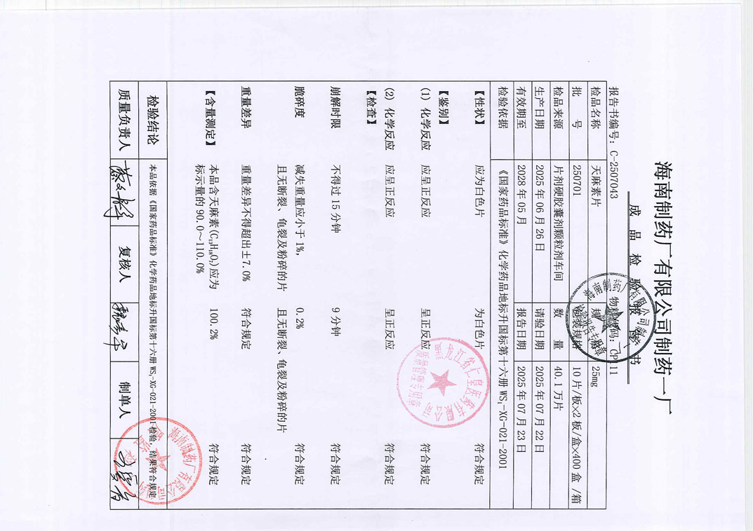 天麻素片250701