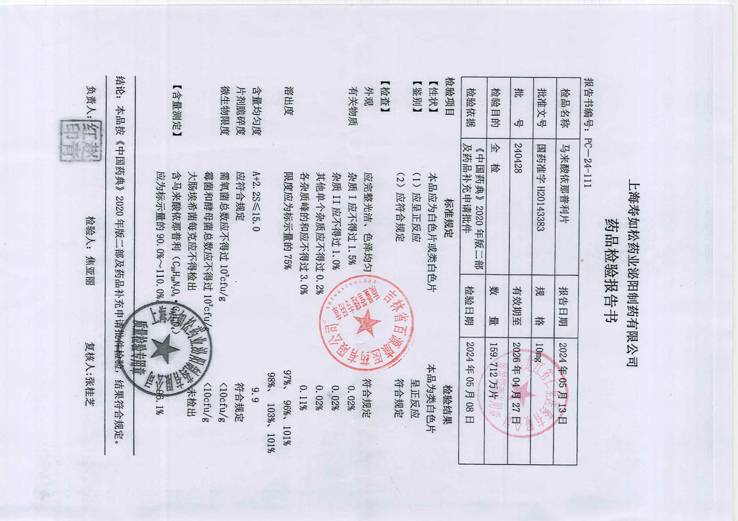 馬來酸依那普利片24
