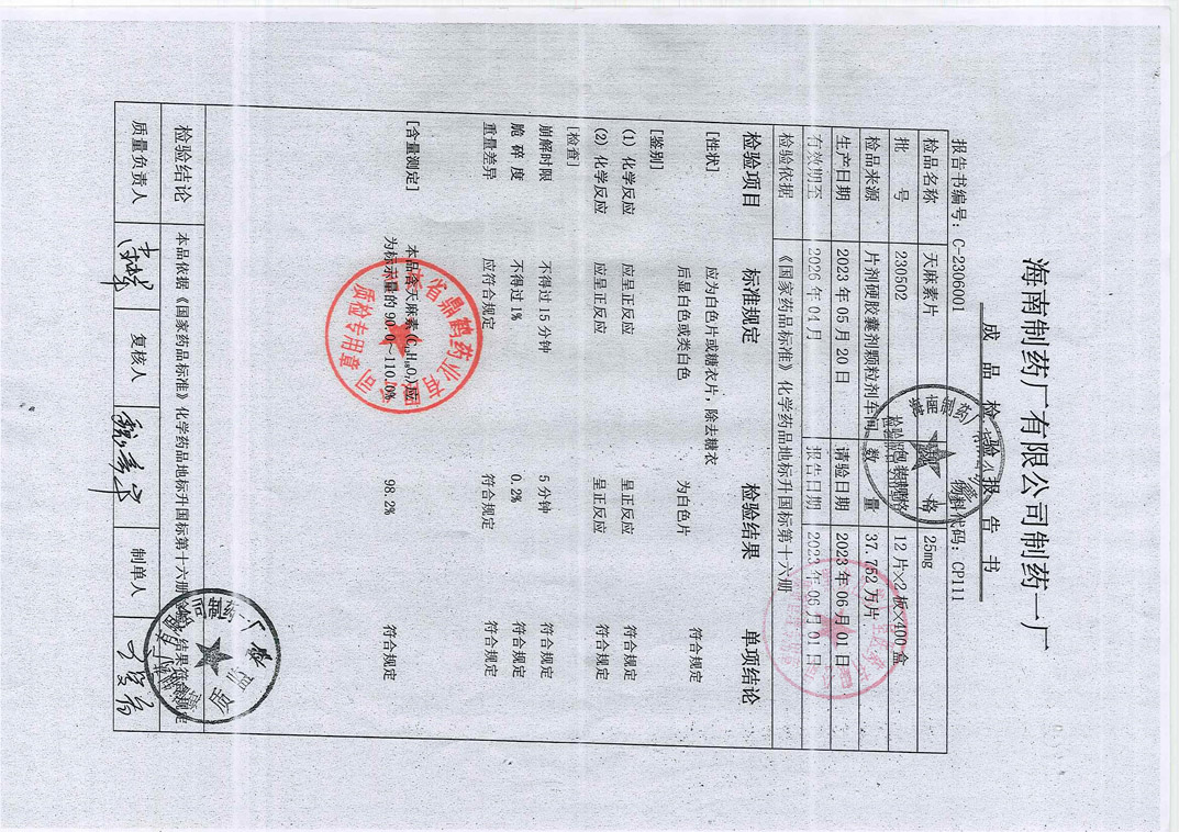 天麻素片230502