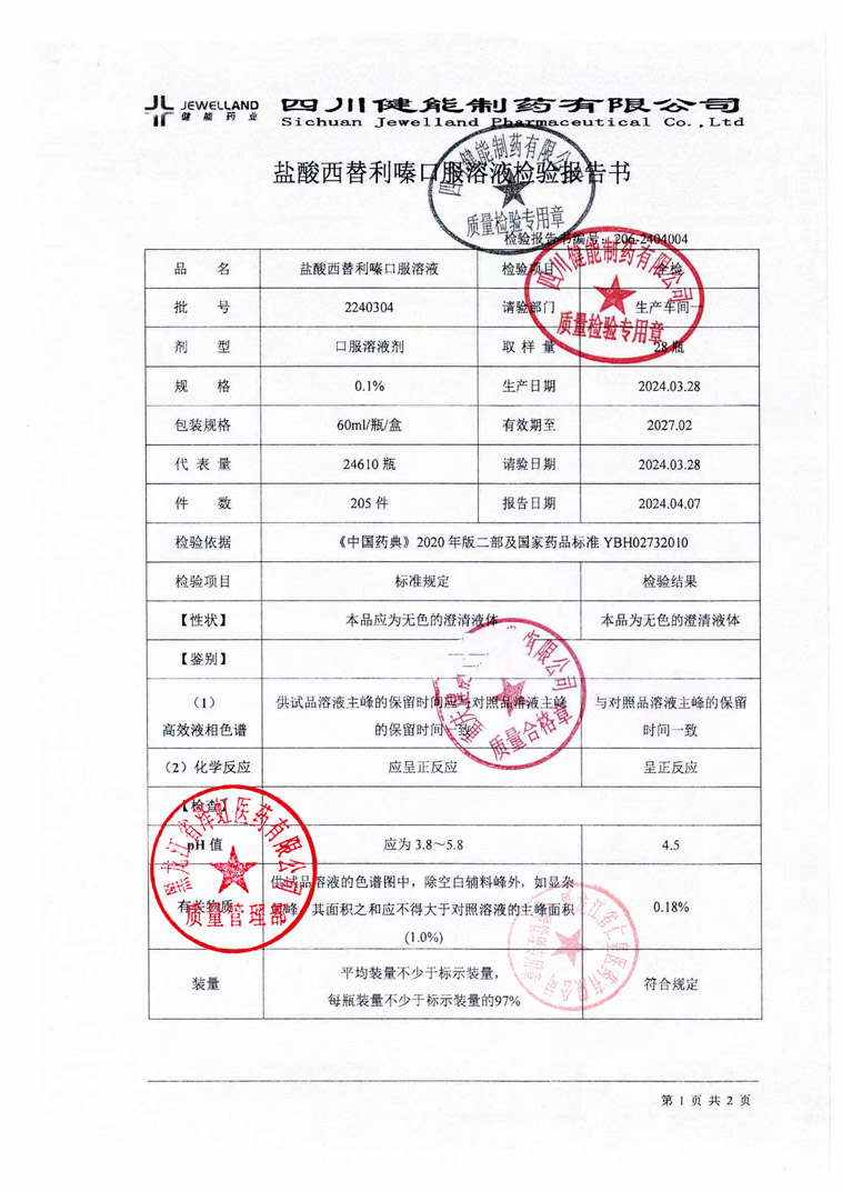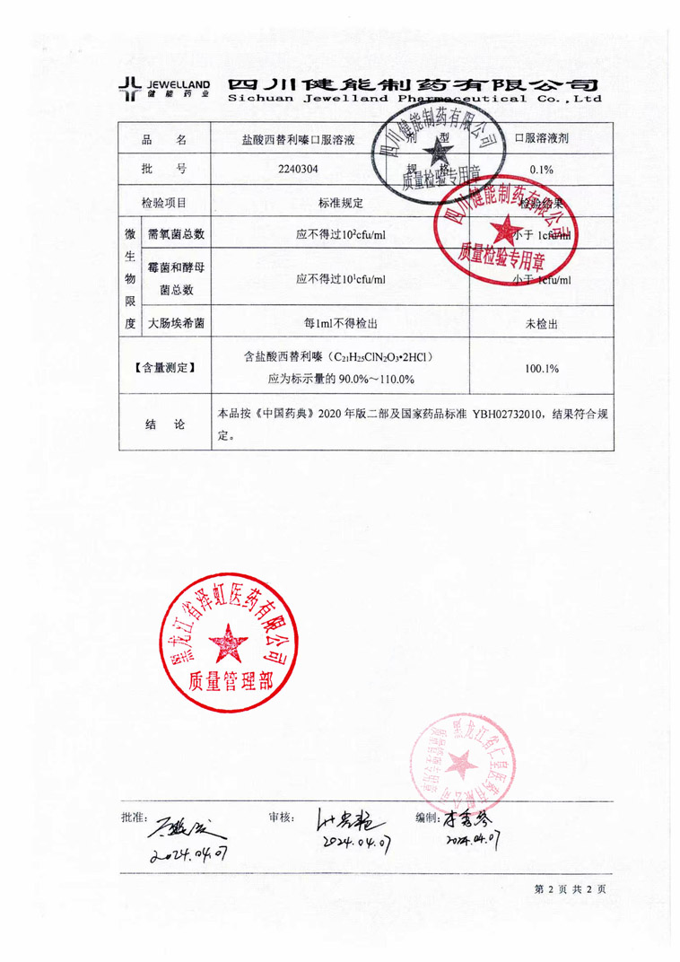 鹽酸西替利嗪口服溶液