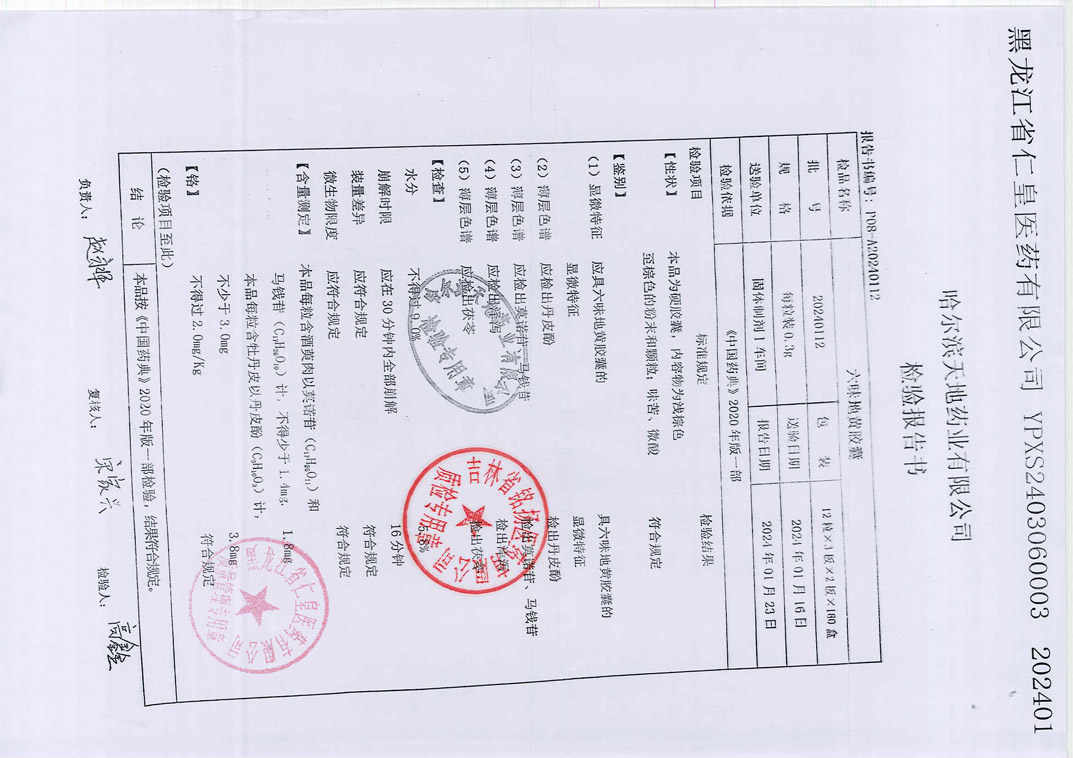 六味地黃膠囊2024