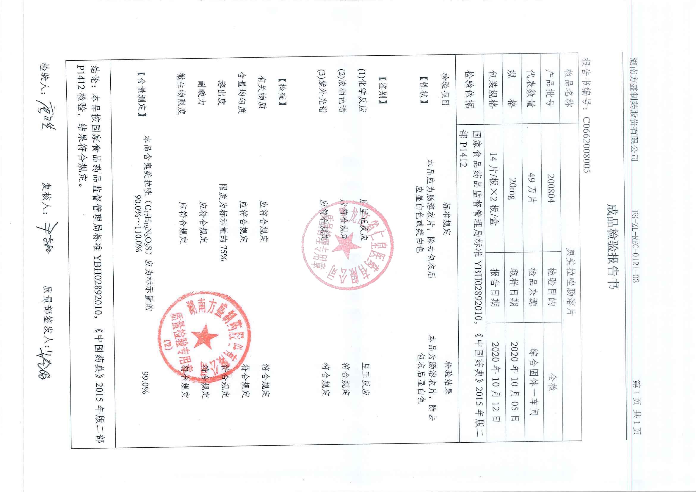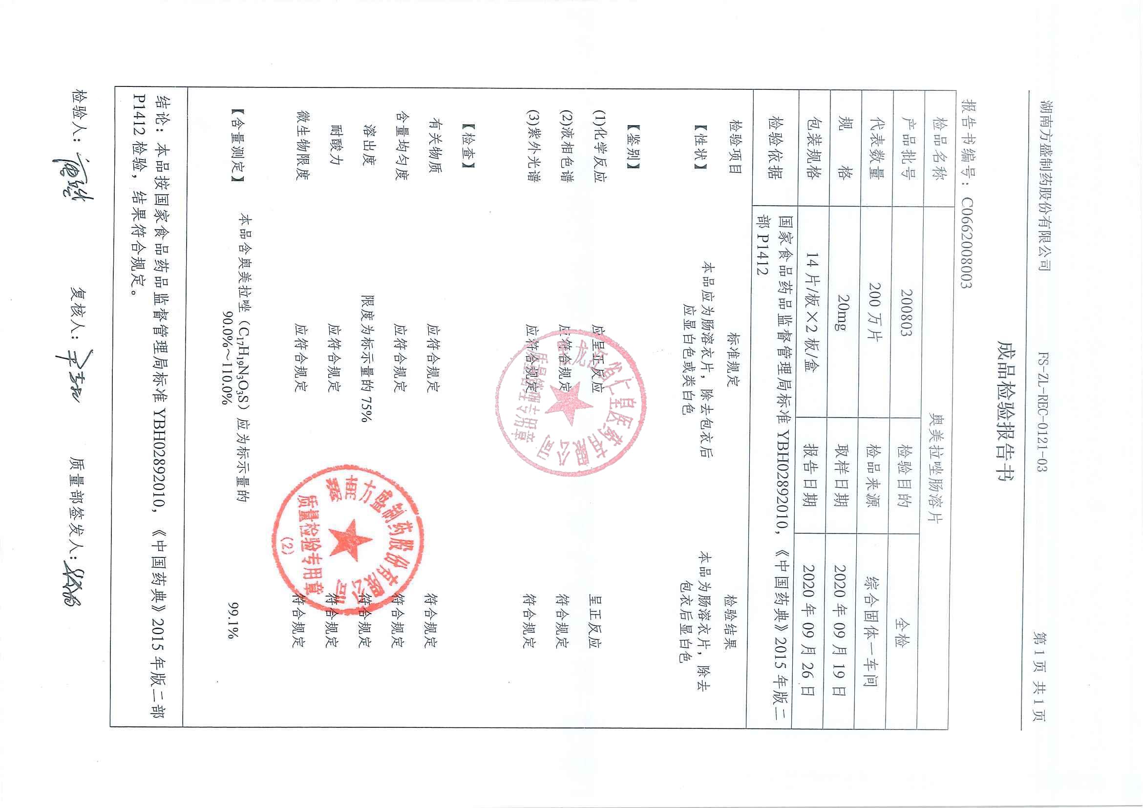 _奧美拉唑腸溶片20