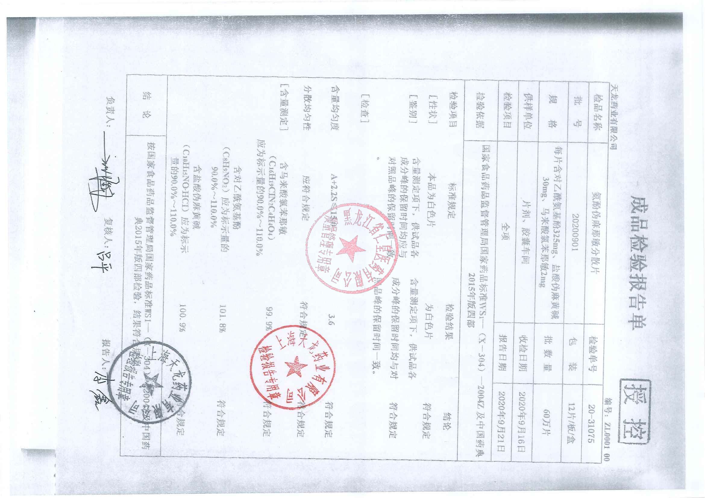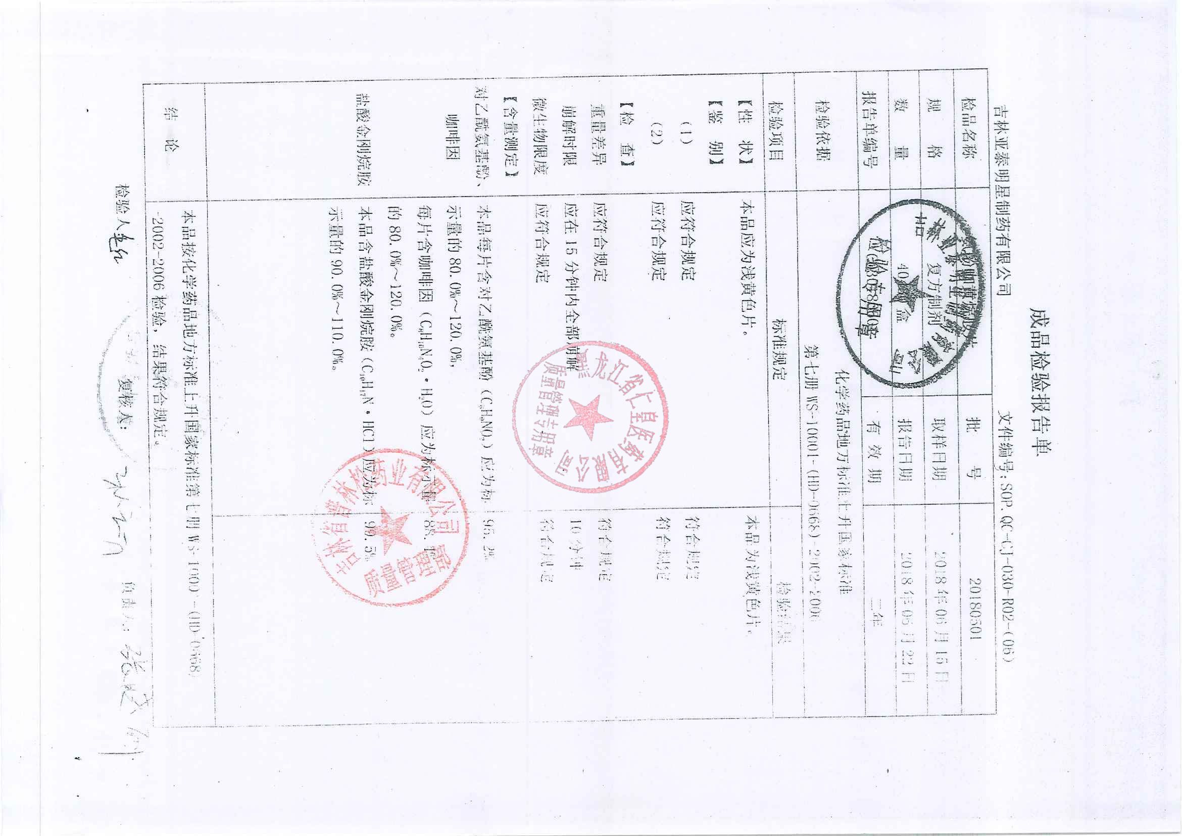 _氨酚咖黃烷胺片20