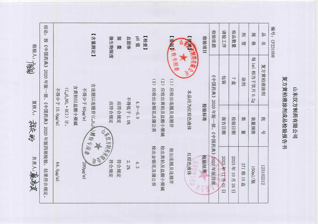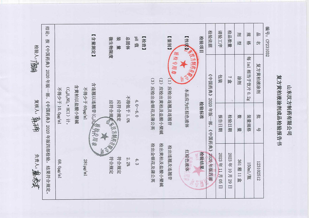 復(fù)方黃柏液涂劑123