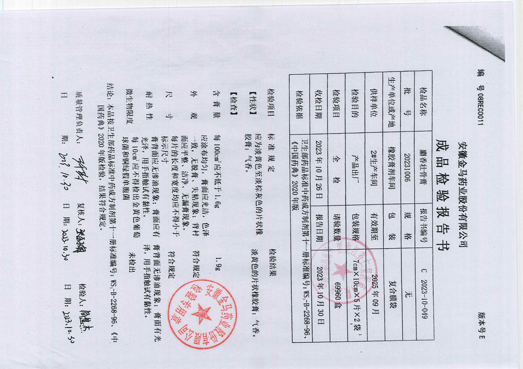麝香壯骨膏20231
