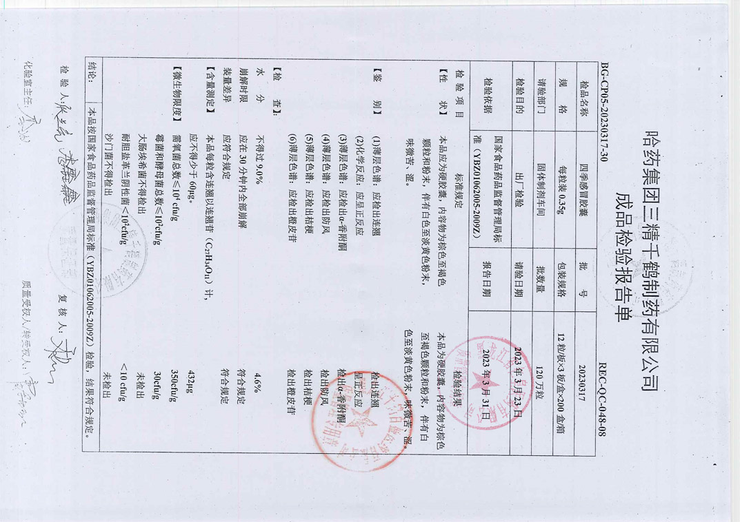 四季感冒膠囊2023