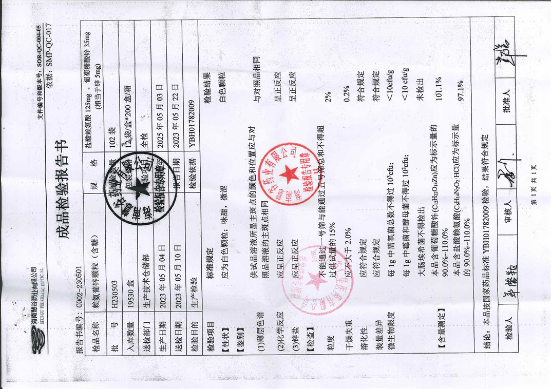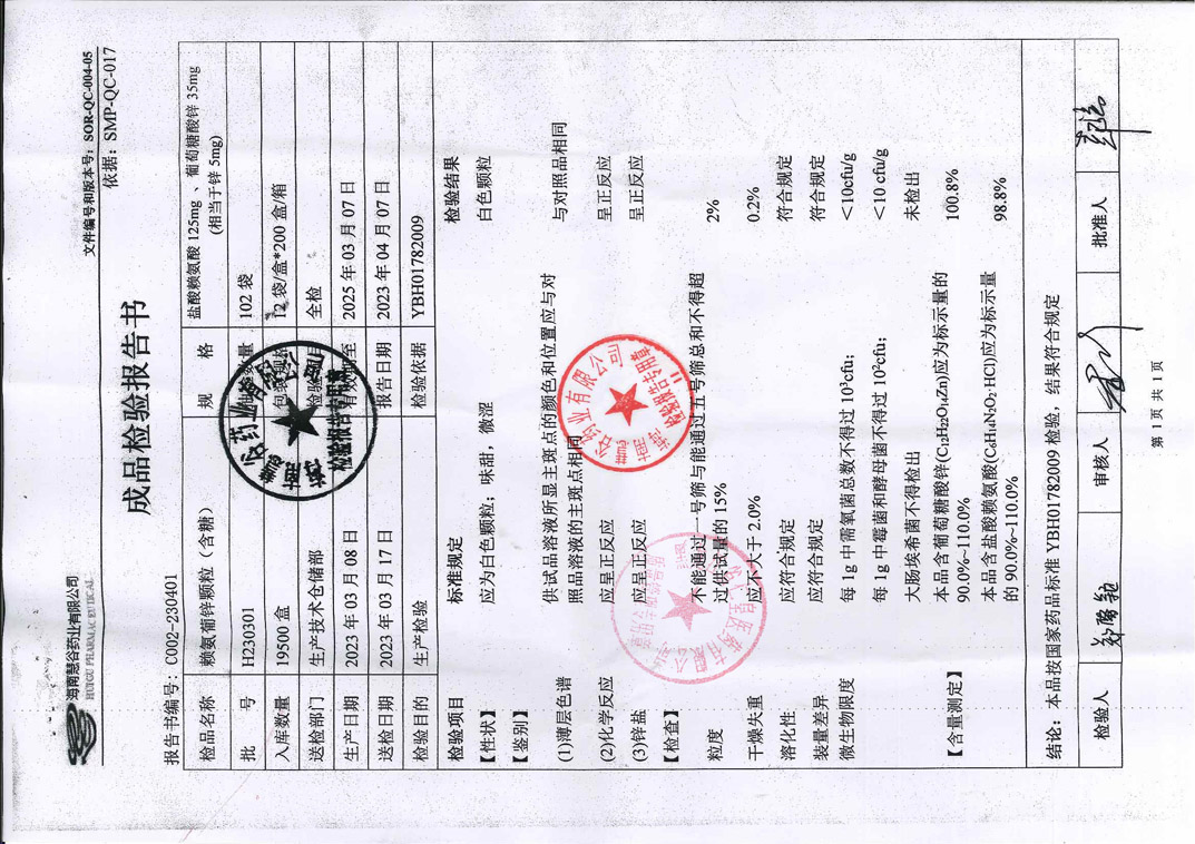 賴氨葡鋅顆粒H230