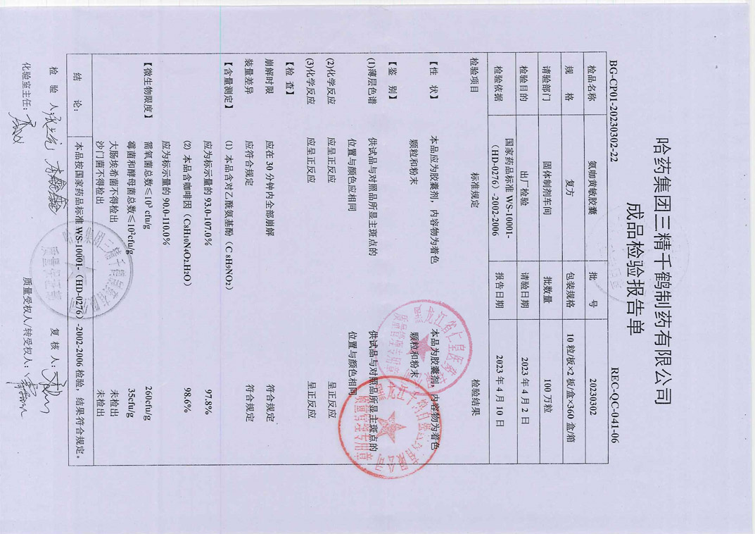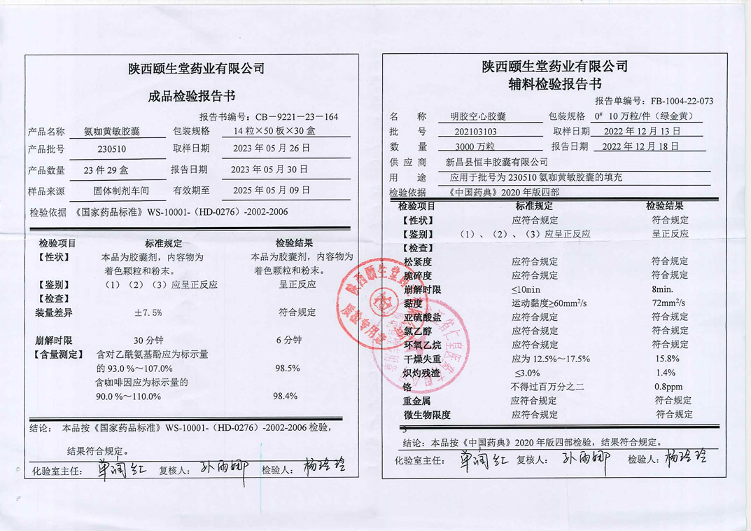 氨咖黃敏膠囊2305