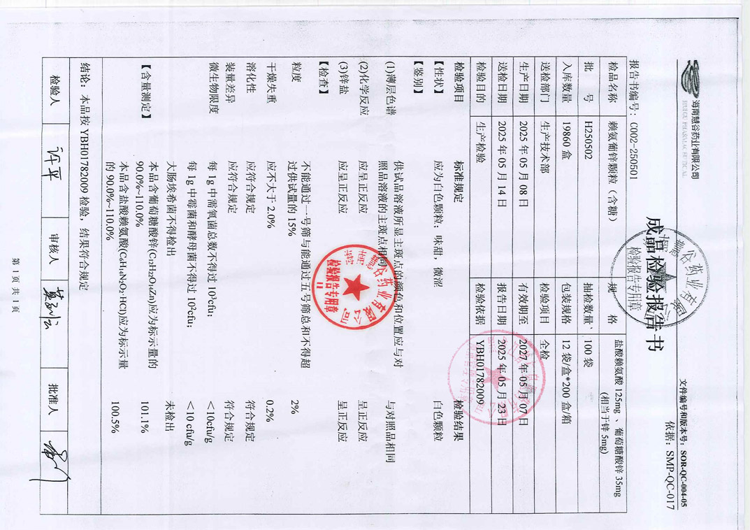 賴氨葡鋅顆粒H250