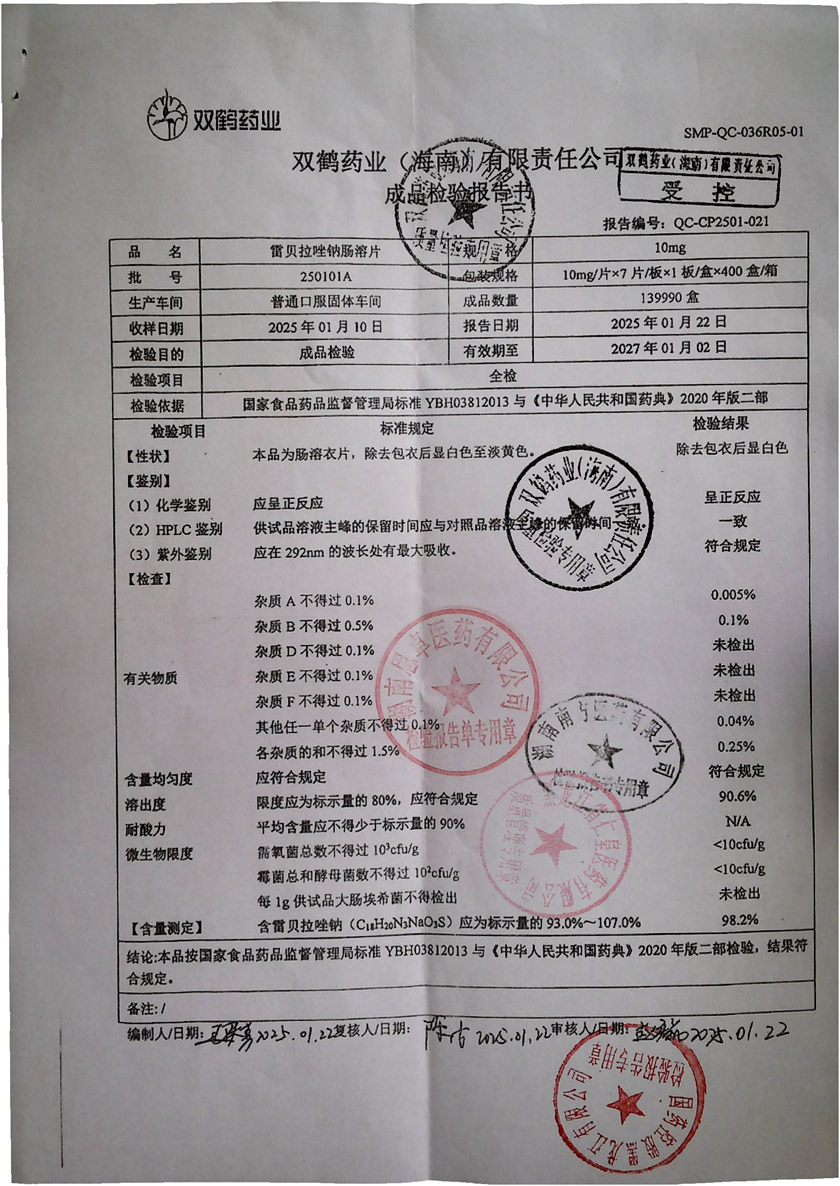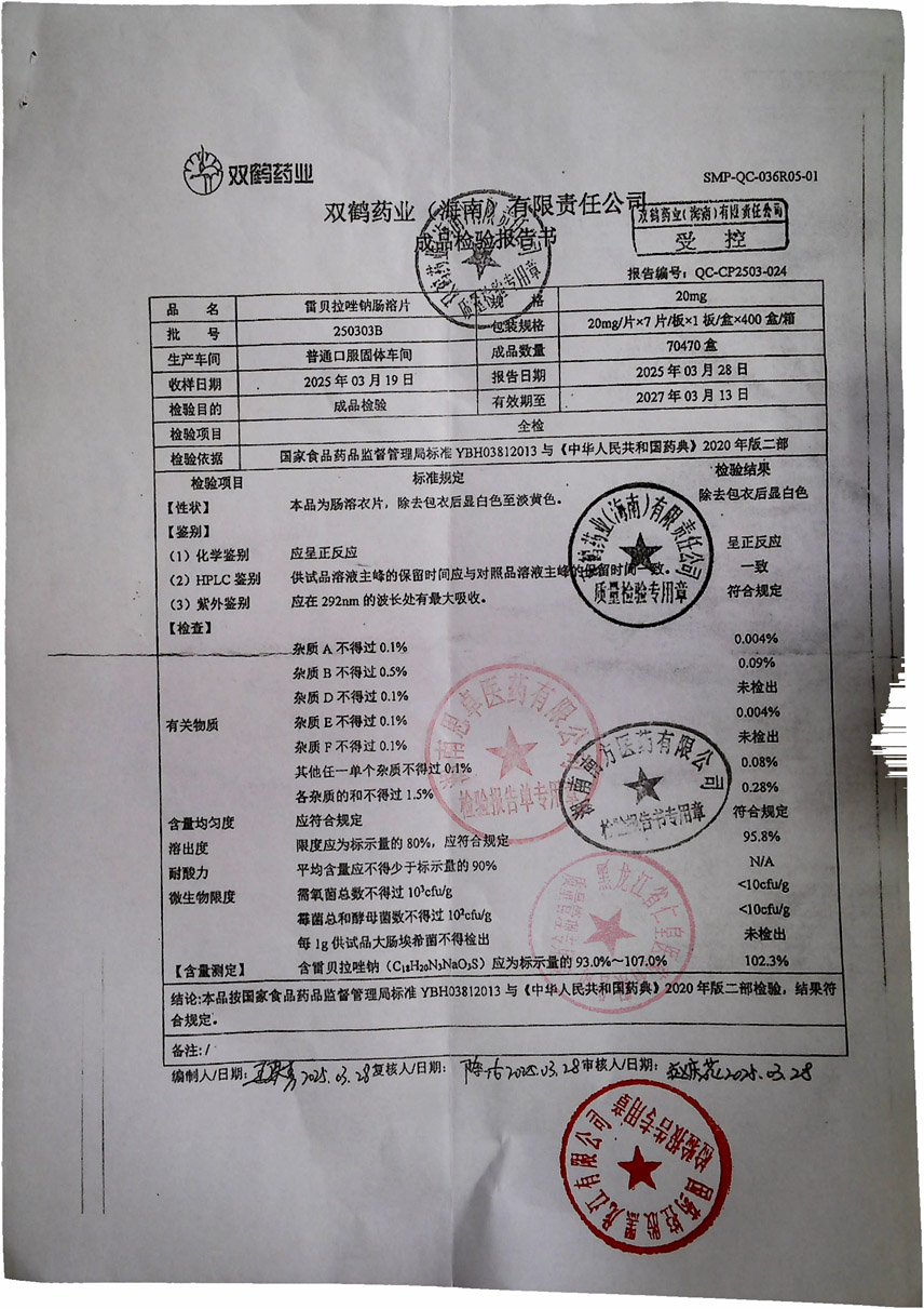 雷貝拉唑鈉腸溶片25
