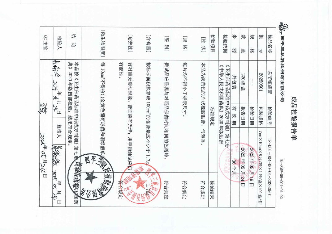 關(guān)節(jié)鎮(zhèn)痛膏20250