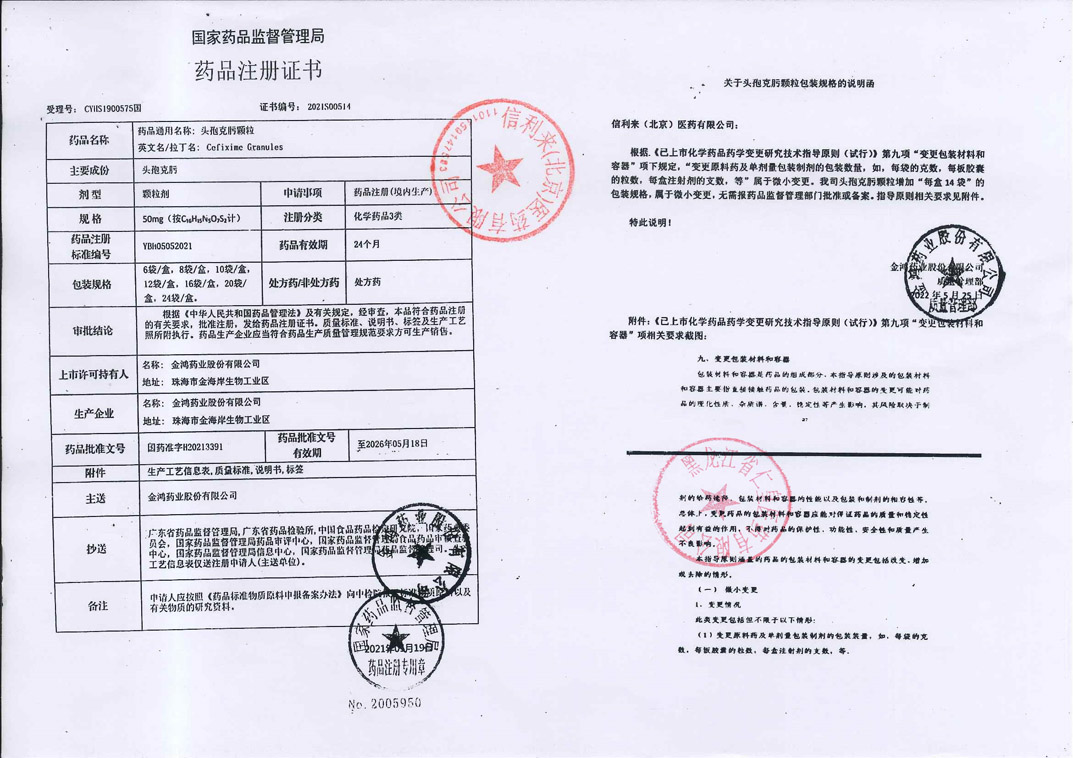 頭孢克肟顆粒金鴻藥業(yè)