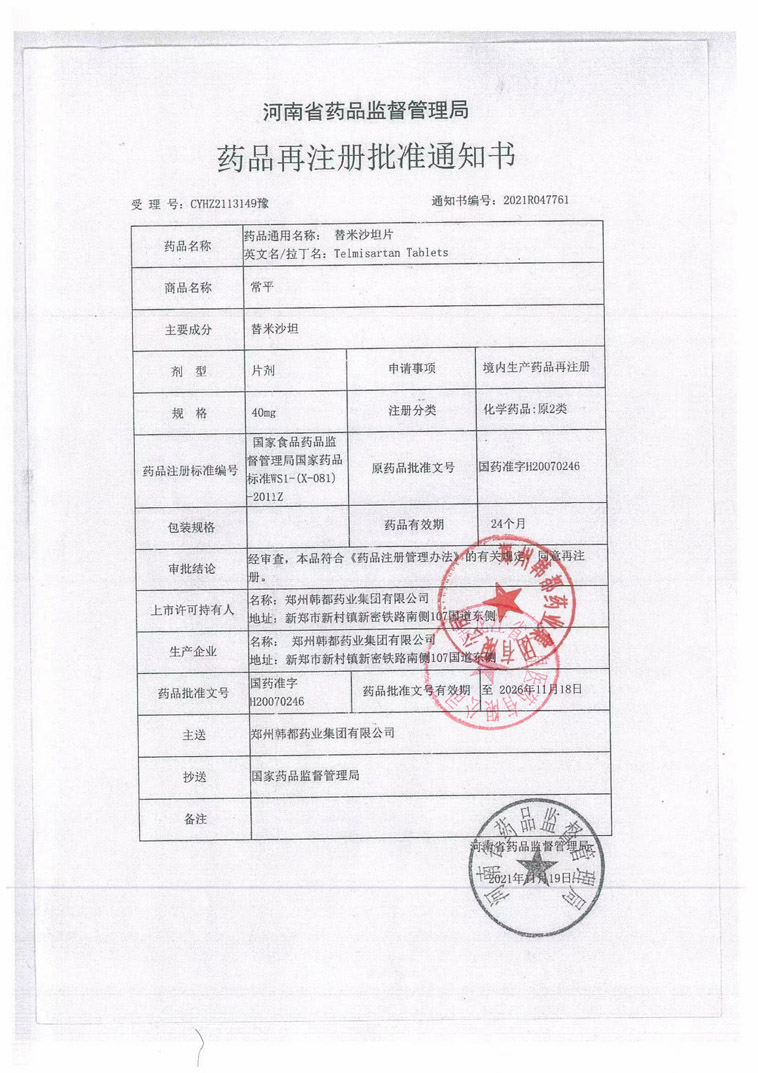 替米沙坦片鄭州韓都藥