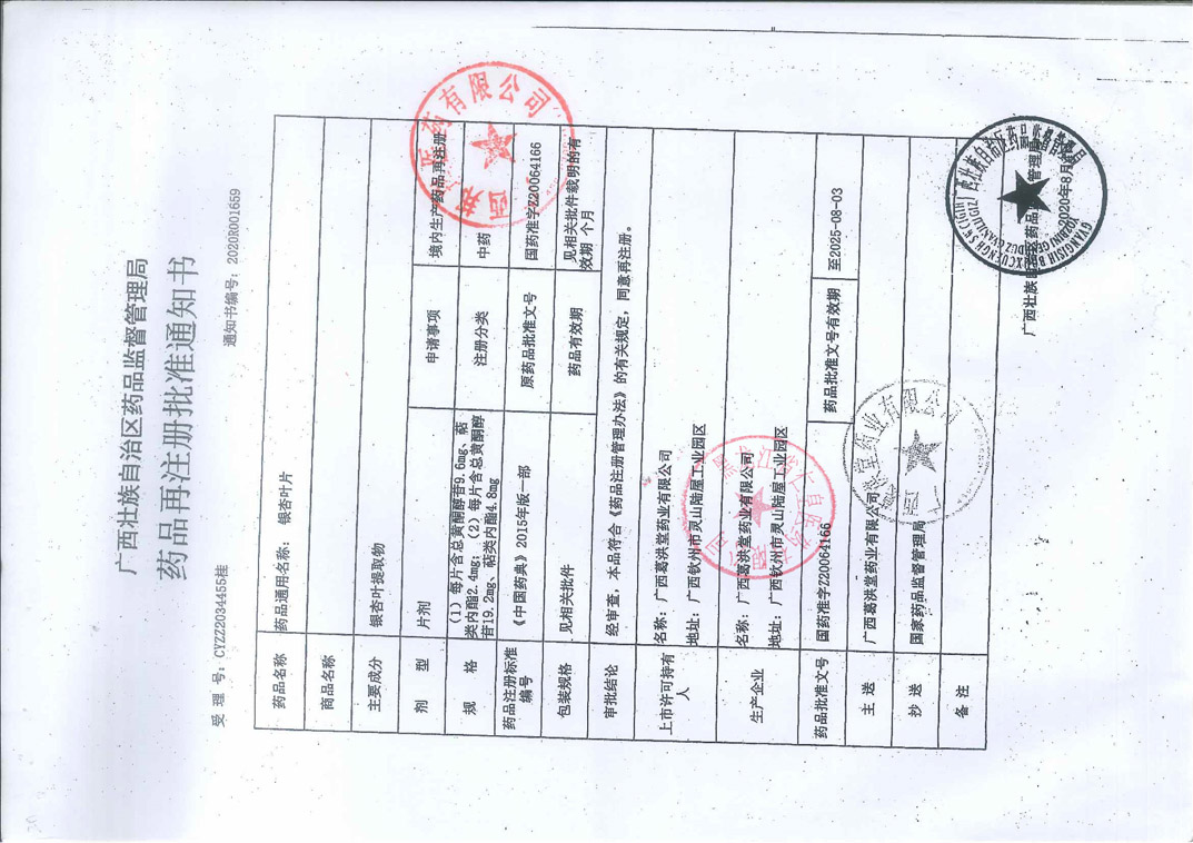 銀杏葉片廣西葛洪堂藥