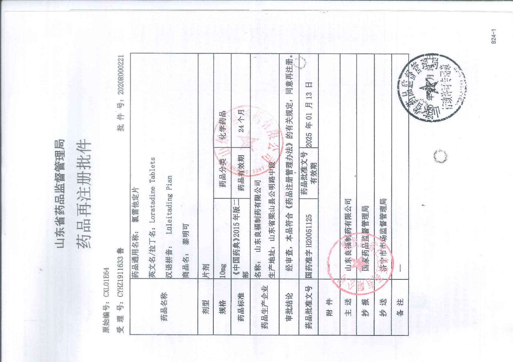 氯雷他定片山東良福制