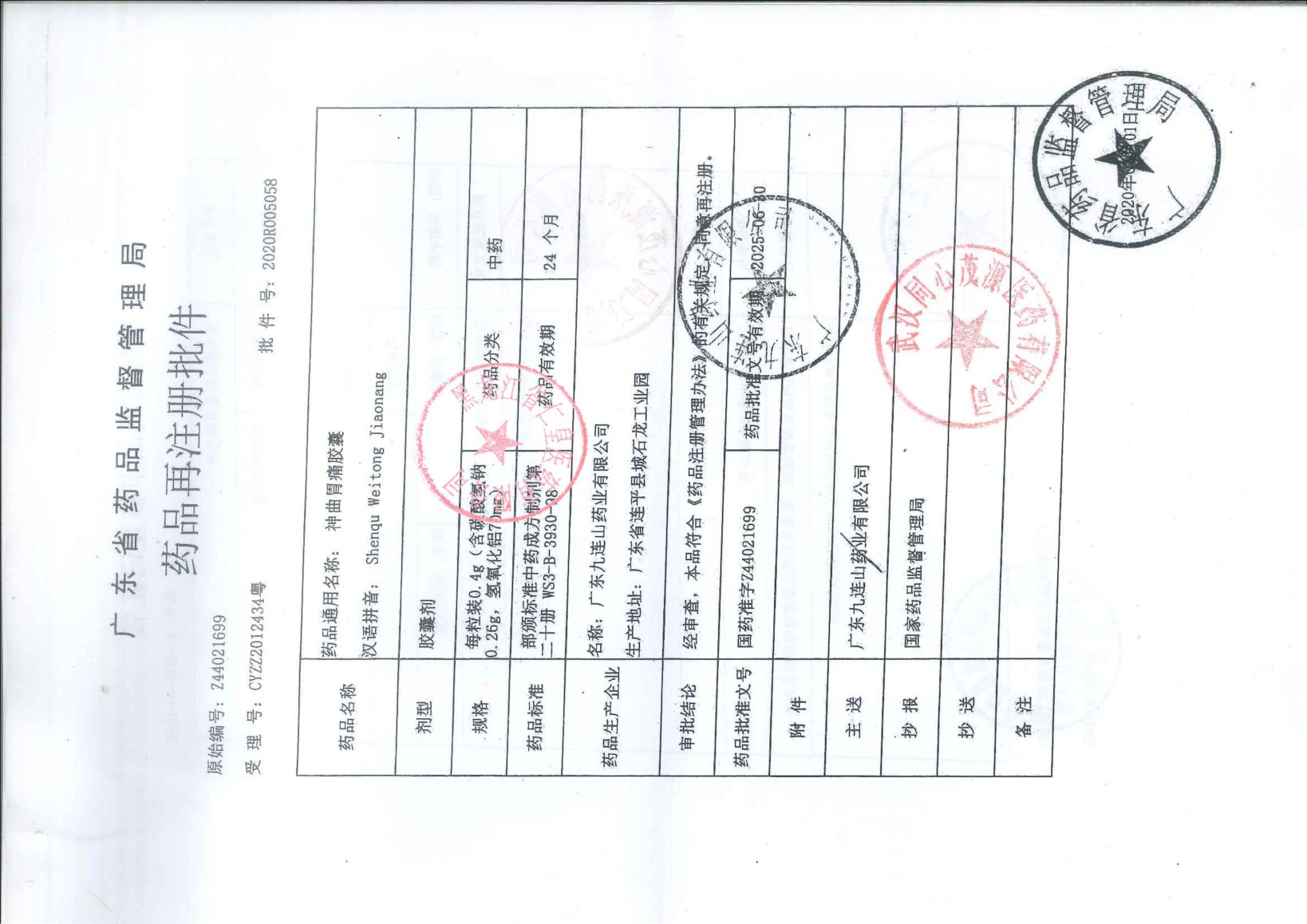 神曲胃痛膠囊廣東九連