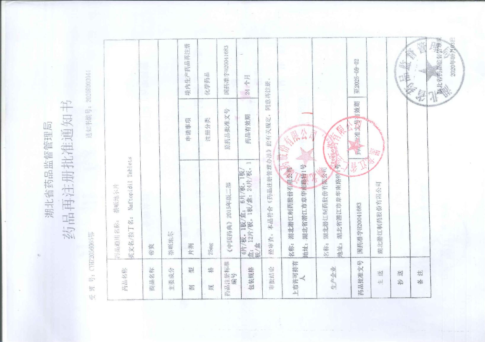 萘哌地爾片湖北潛江制