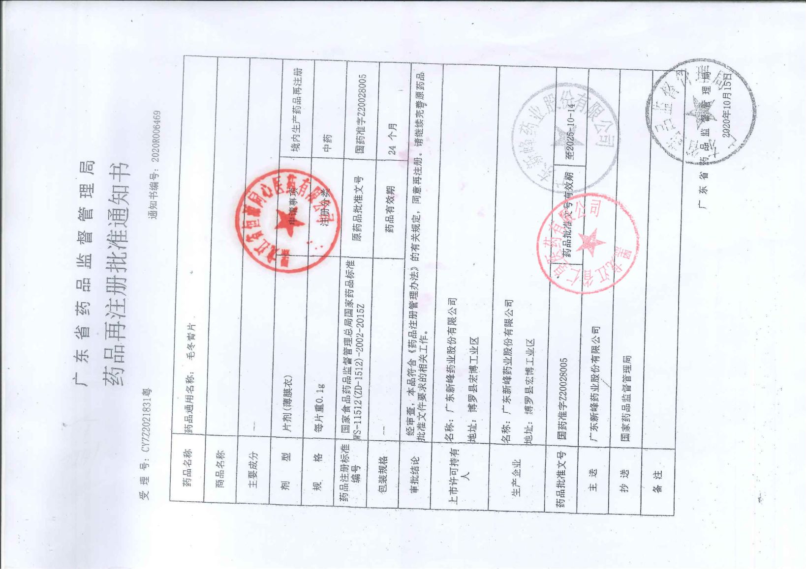 毛冬青片廣東新峰藥業(yè)