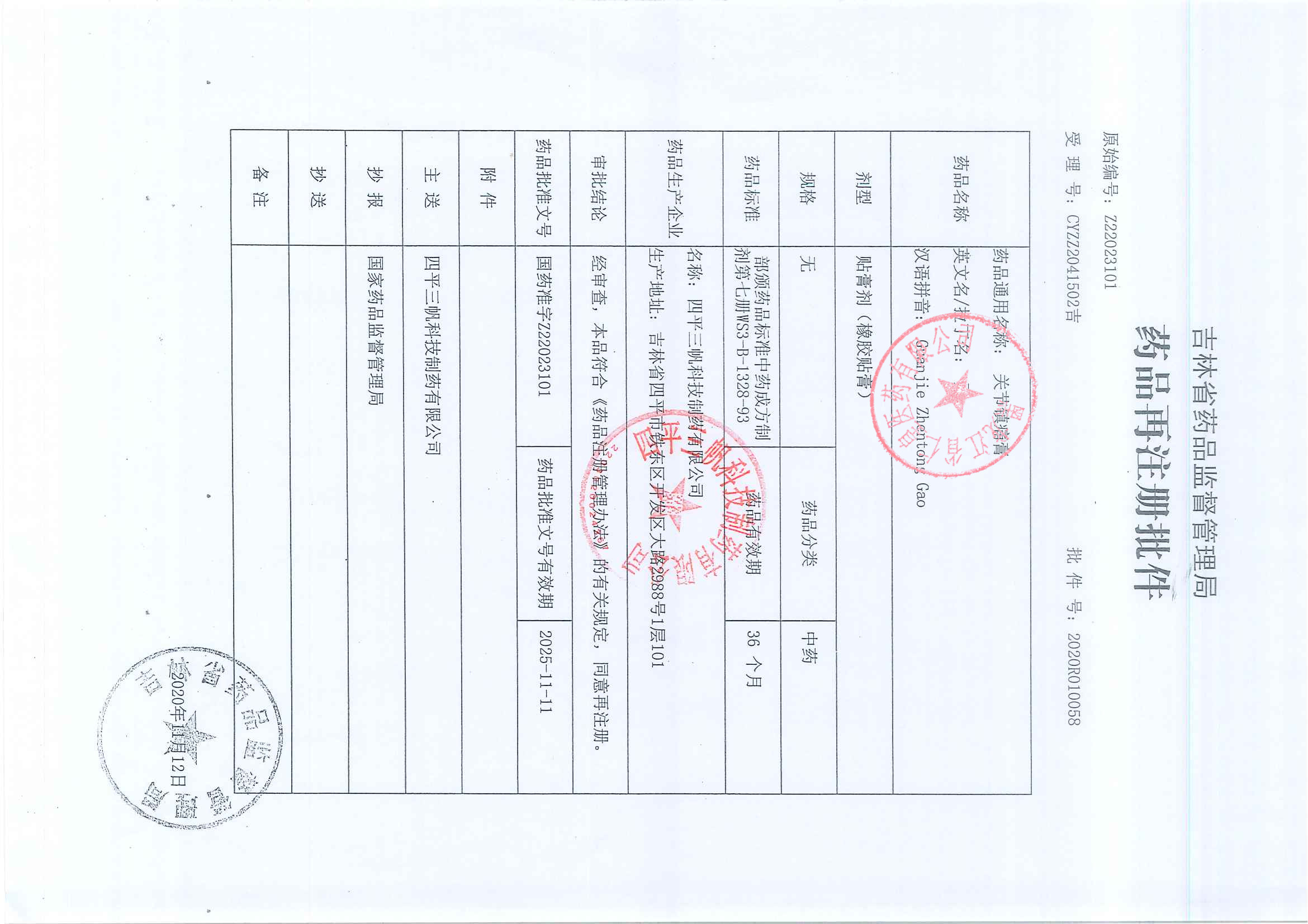關(guān)節(jié)鎮(zhèn)痛膏四平三帆科