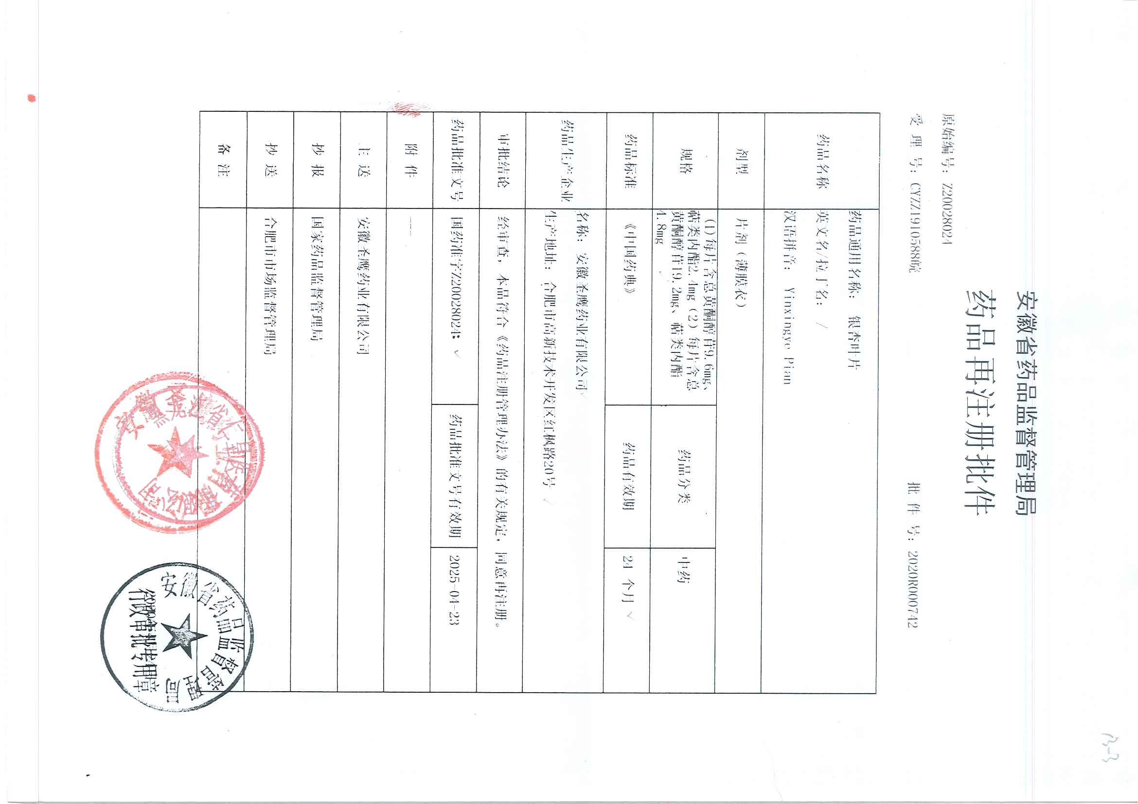 _銀杏葉片安徽圣鷹藥