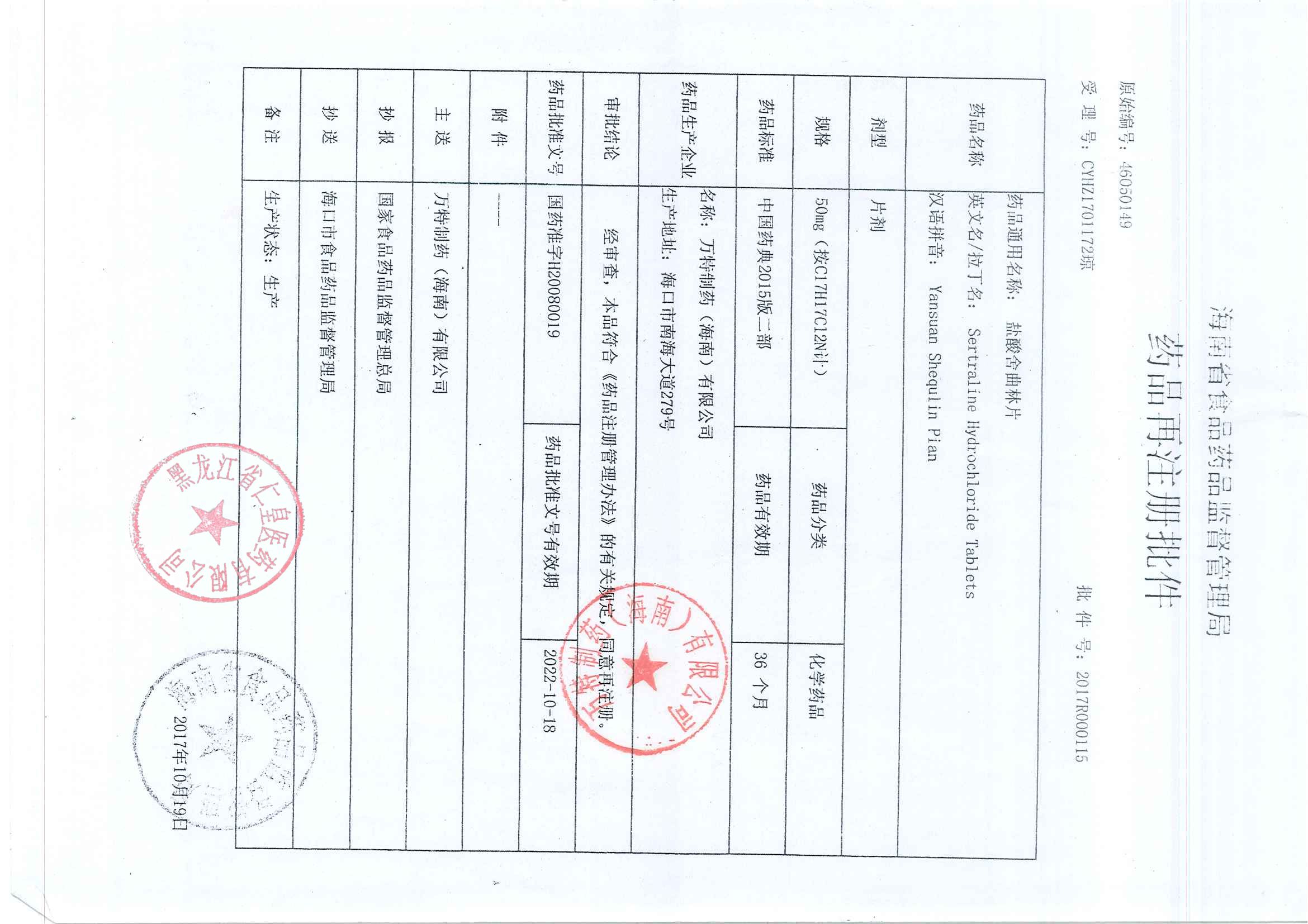 _鹽酸舍曲林片萬特制