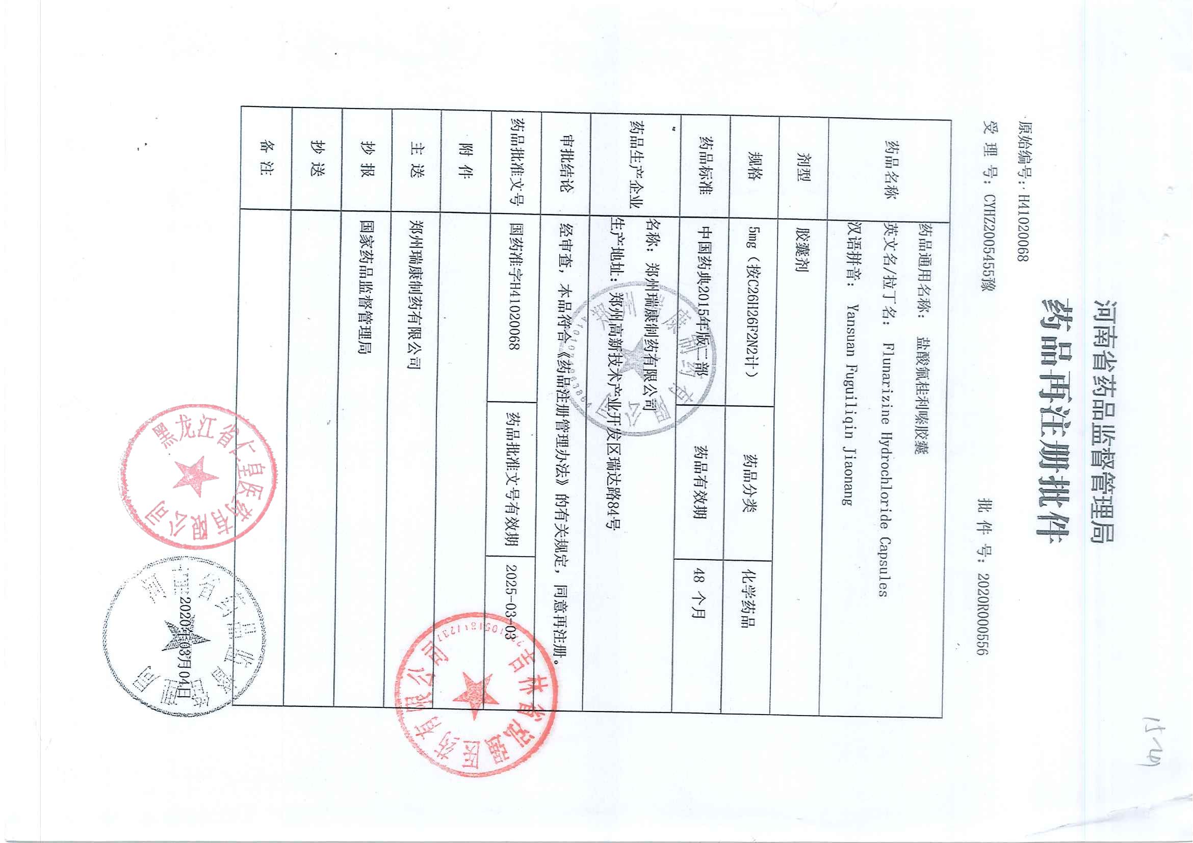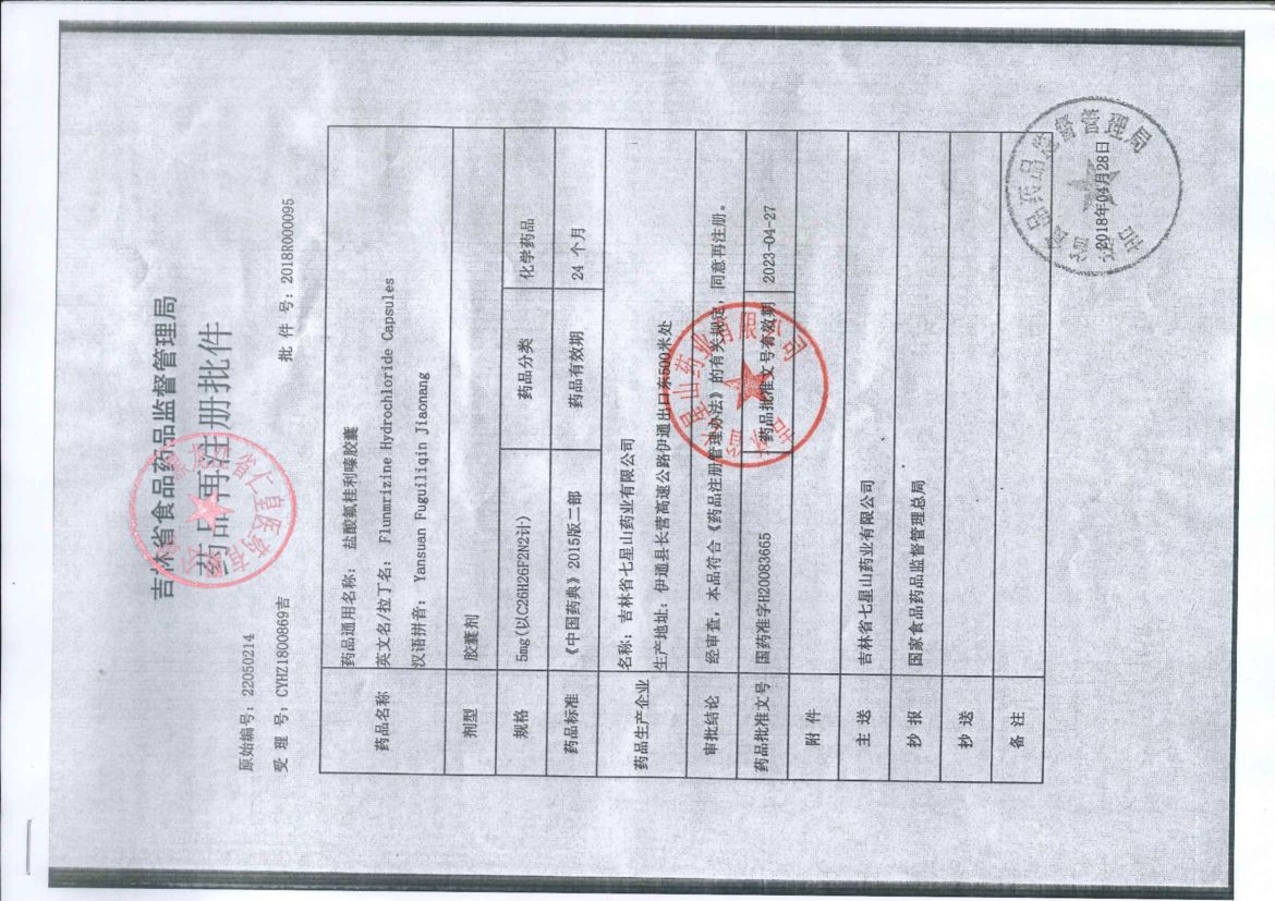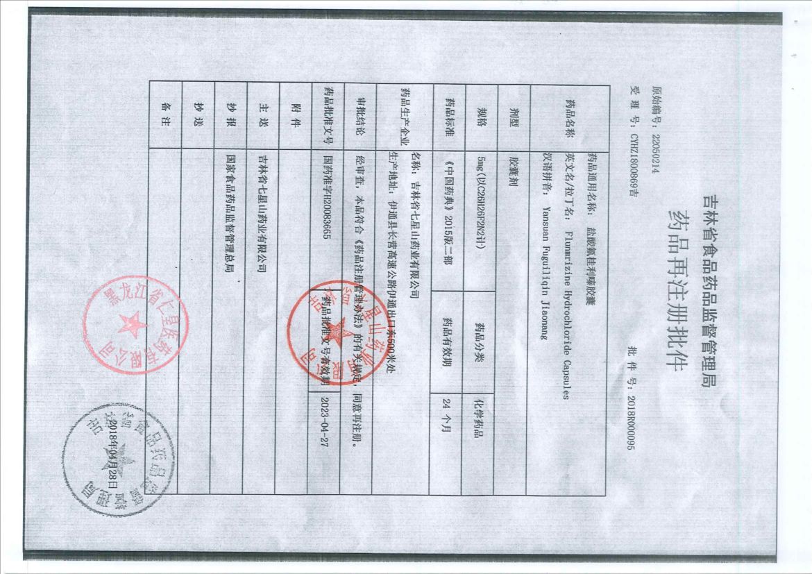 _鹽酸氟桂利嗪膠囊鄭