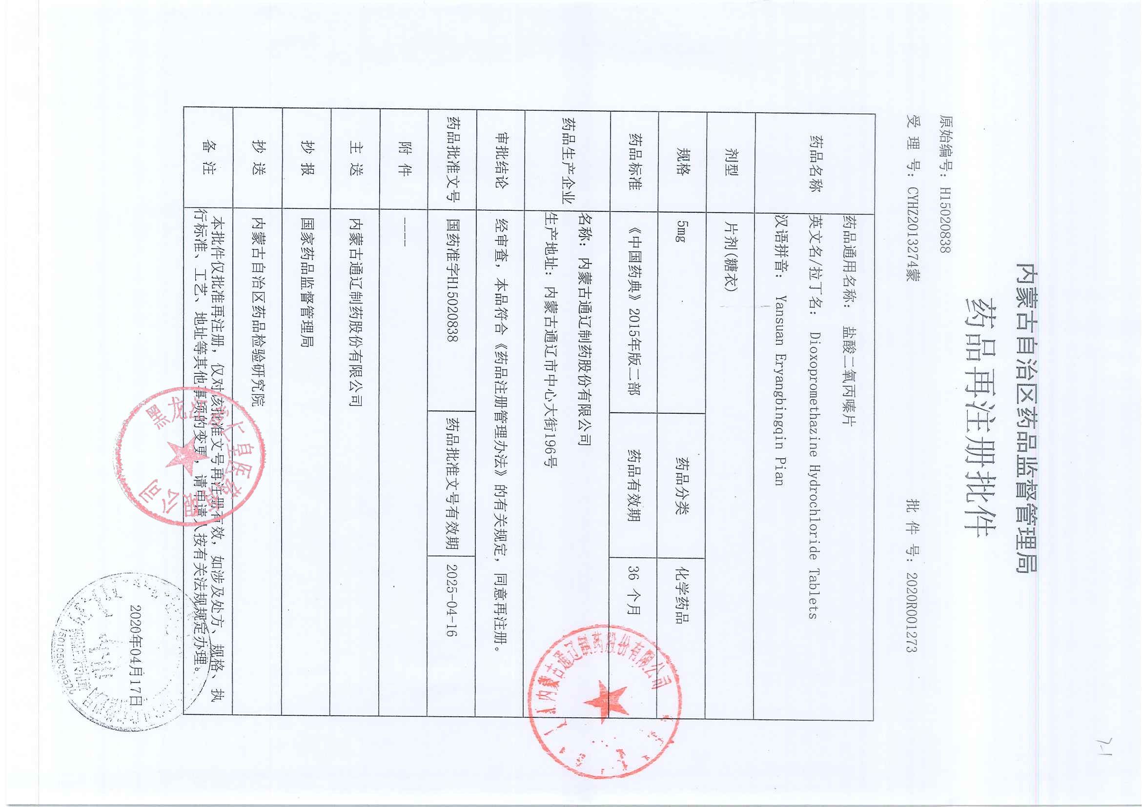 _鹽酸二氧丙嗪片內(nèi)蒙