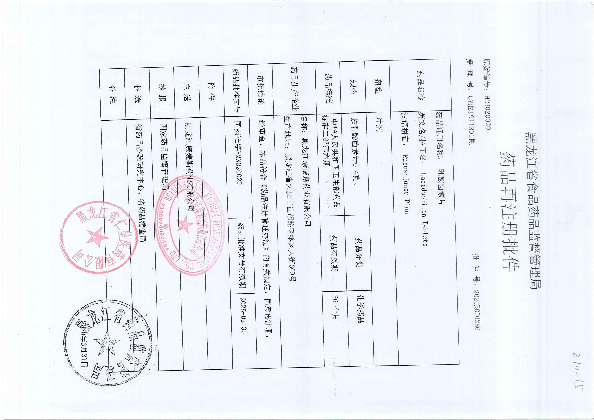 _乳酸菌素片黑龍江康