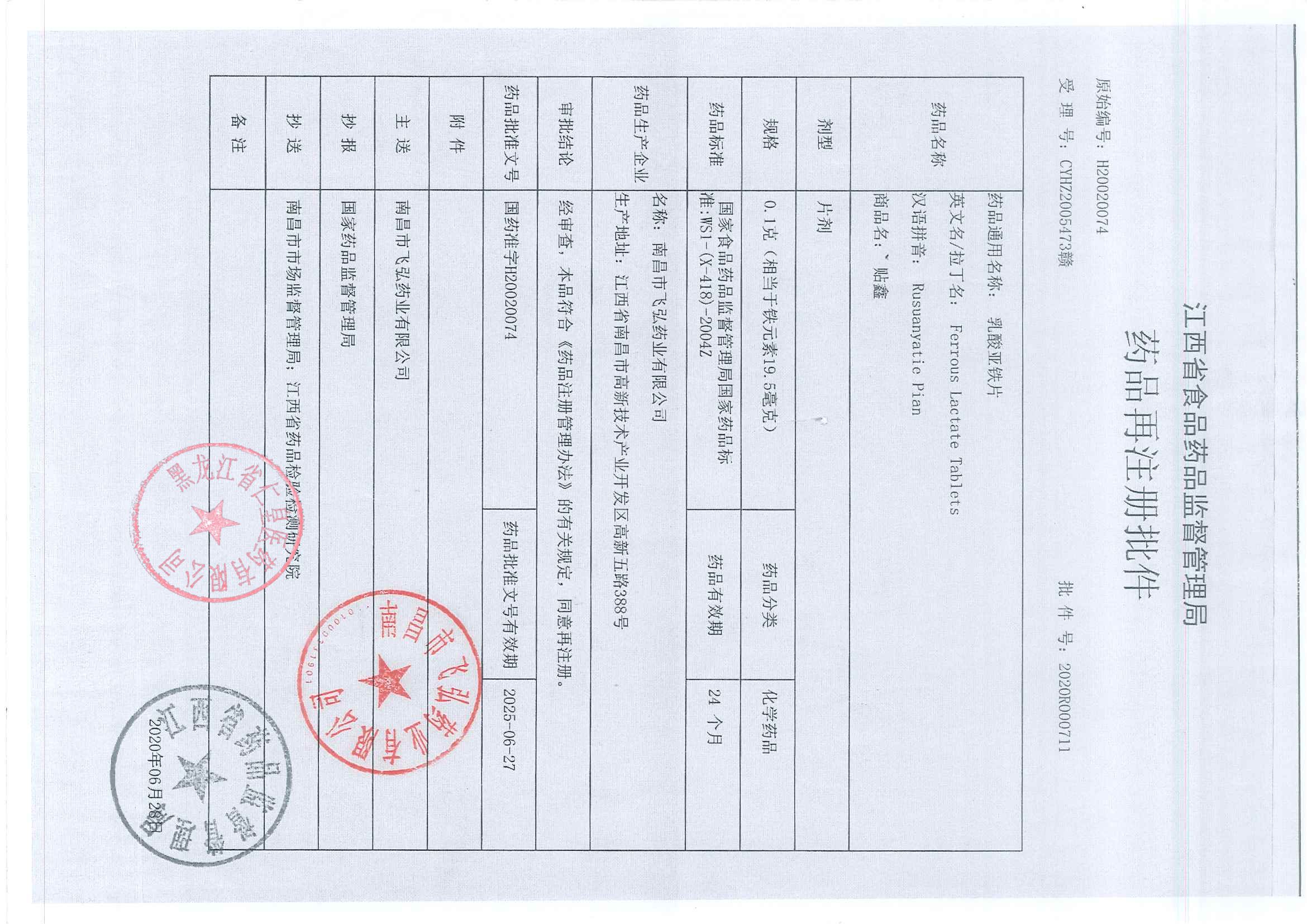 _乳酸亞鐵片南昌市飛
