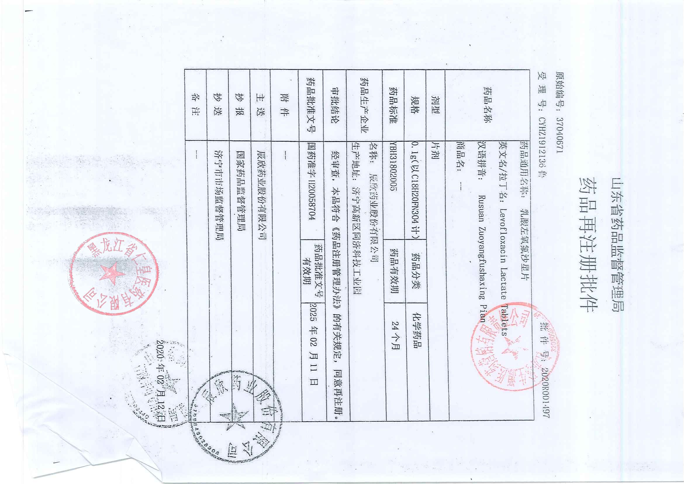 _乳酸左氧氟沙星片辰