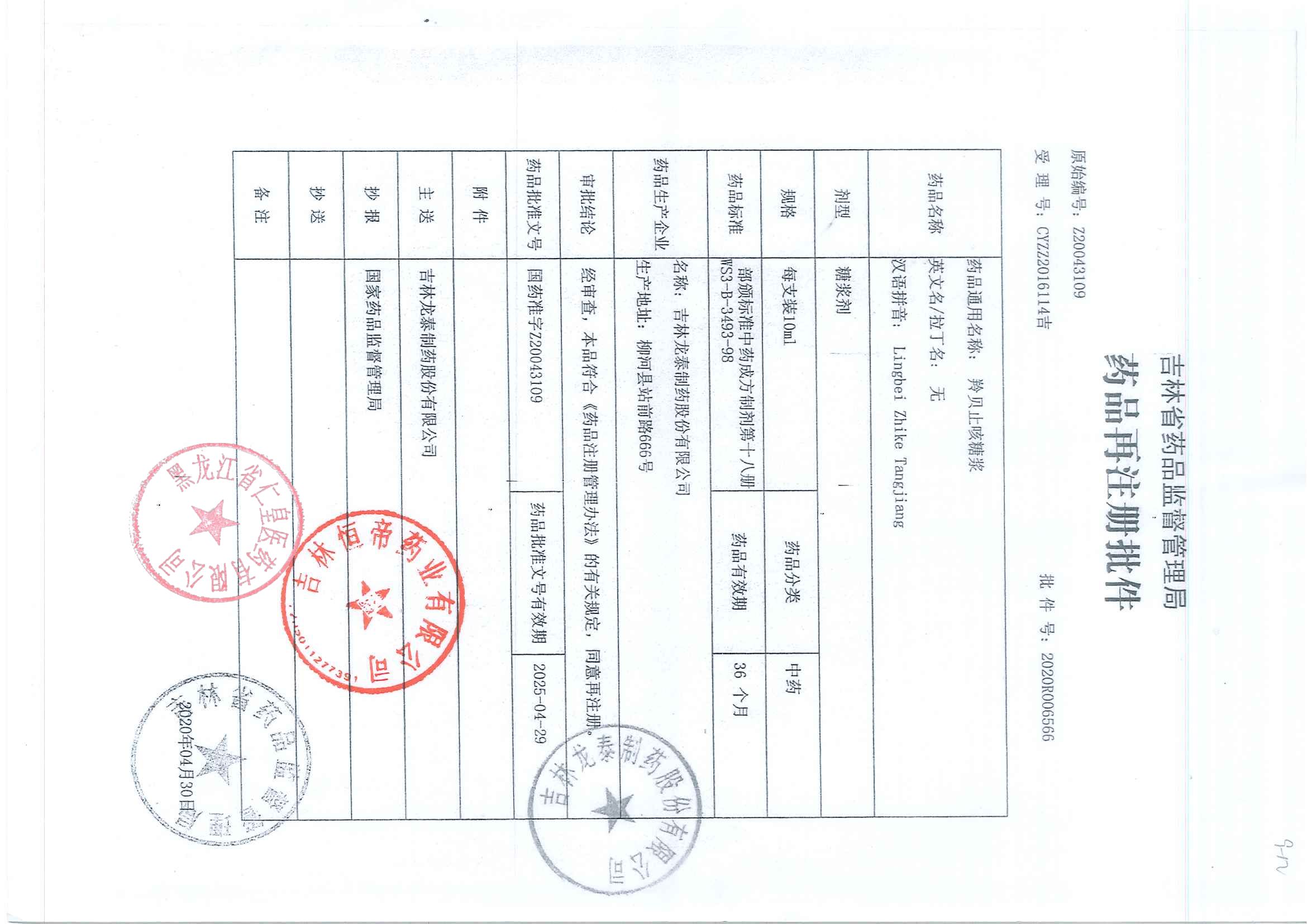 _羚貝止咳糖漿吉林龍