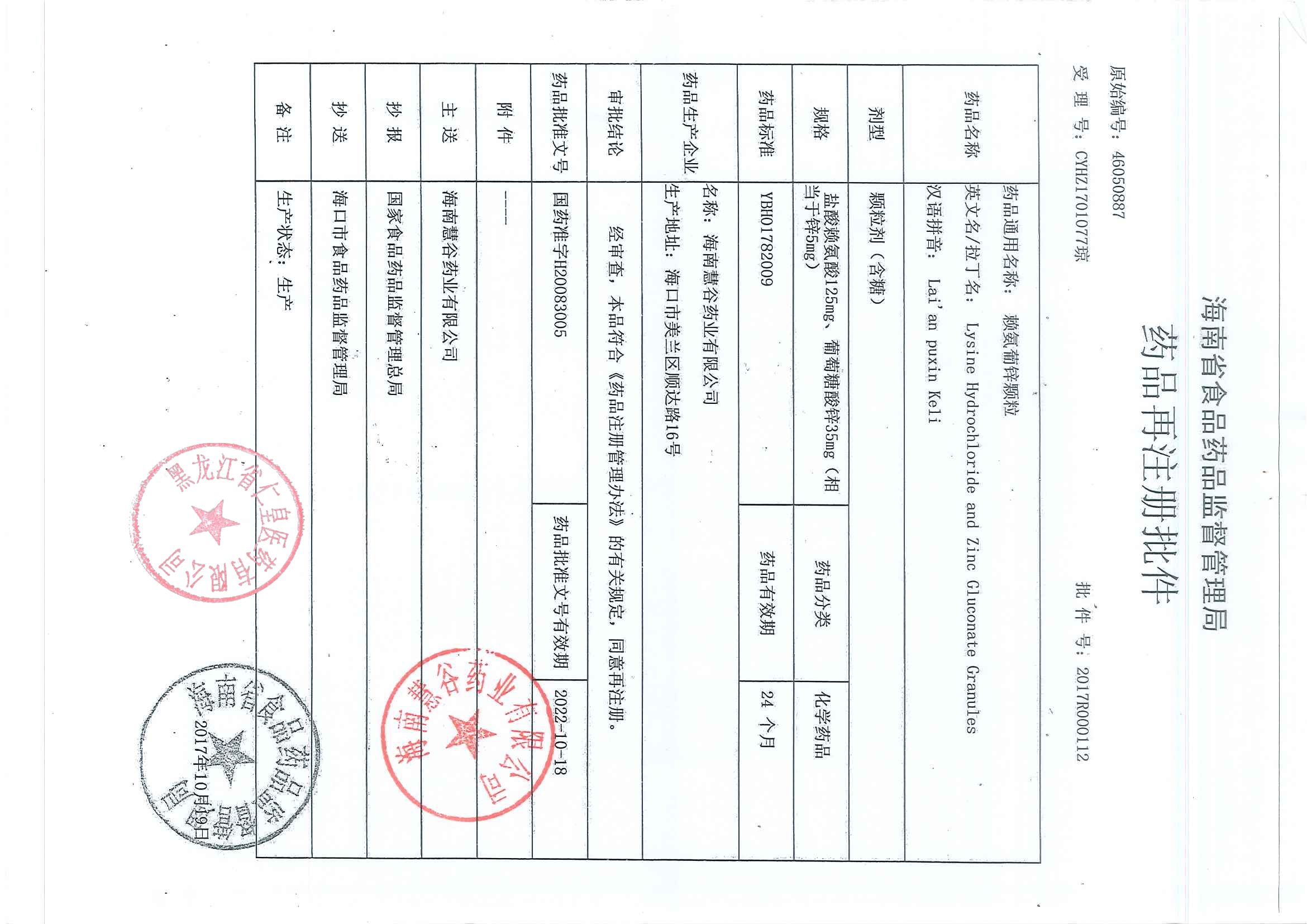 _賴氨葡鋅顆粒海南慧