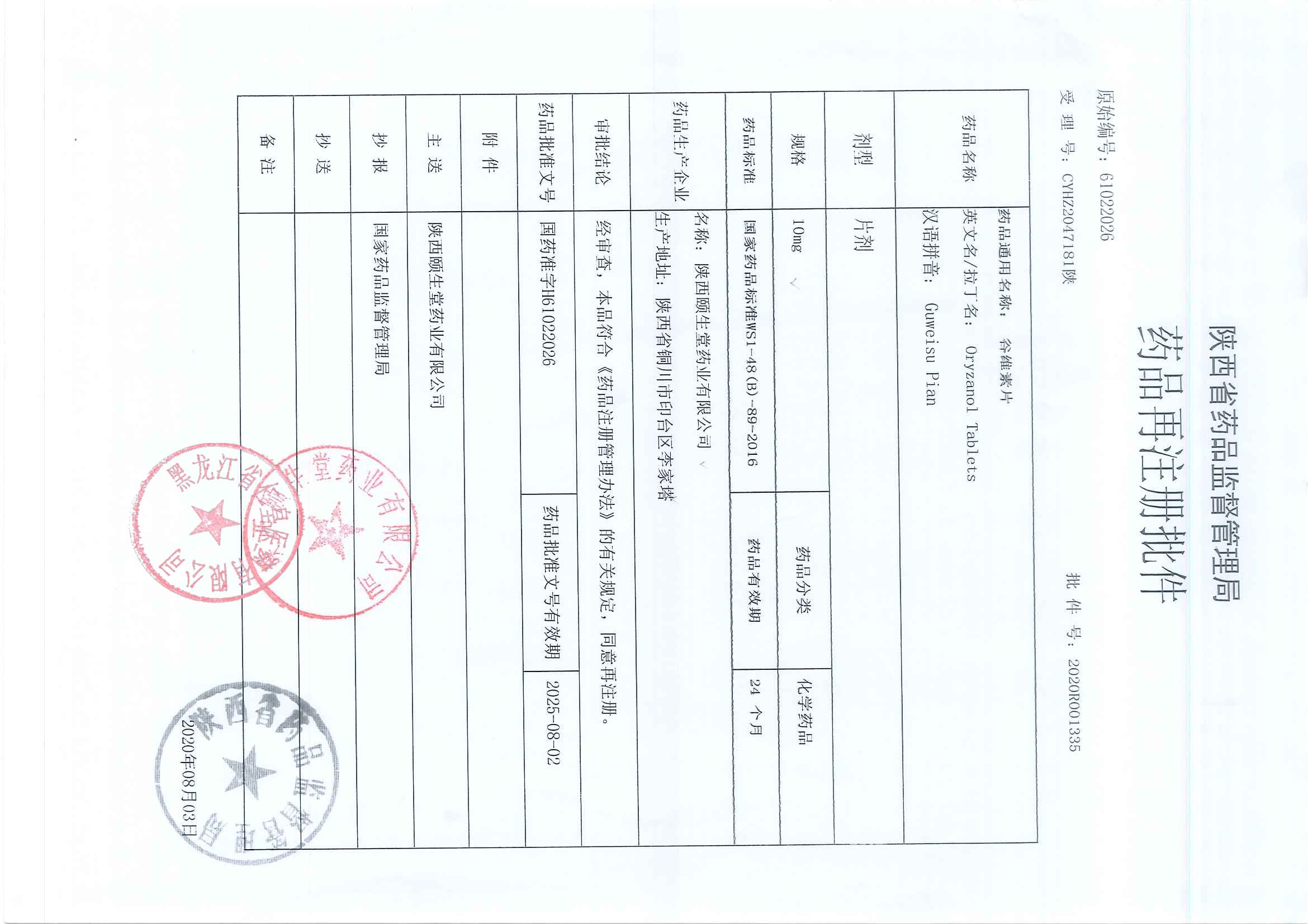 _谷維素片陜西頤生堂