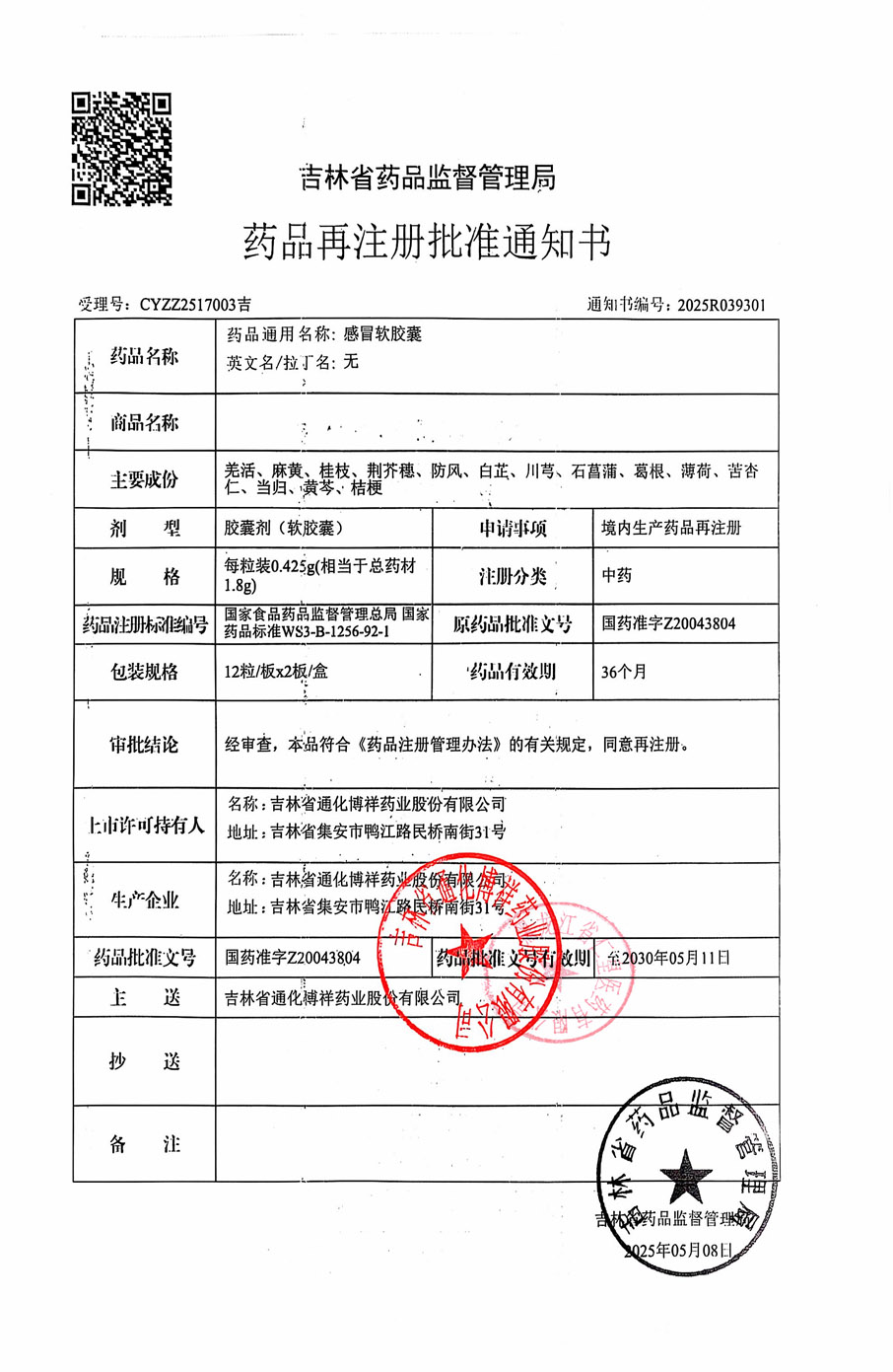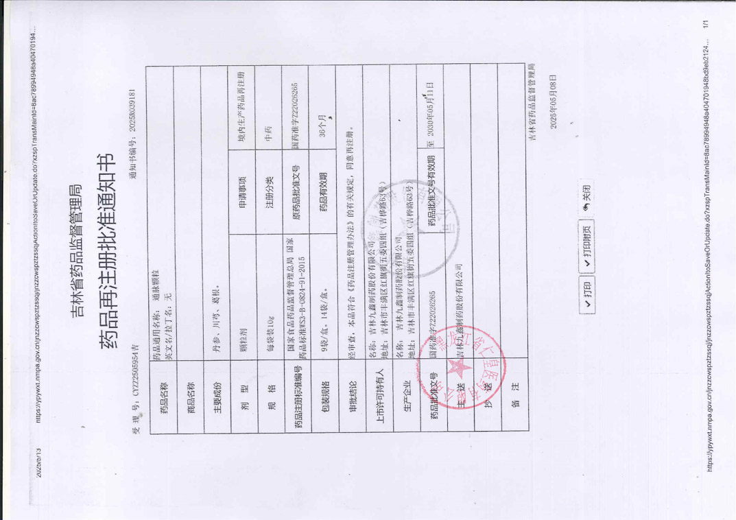 通脈顆粒吉林九鑫制藥