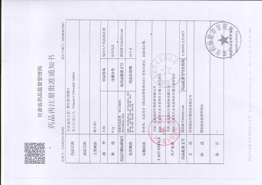 維生素C咀嚼片甘肅成