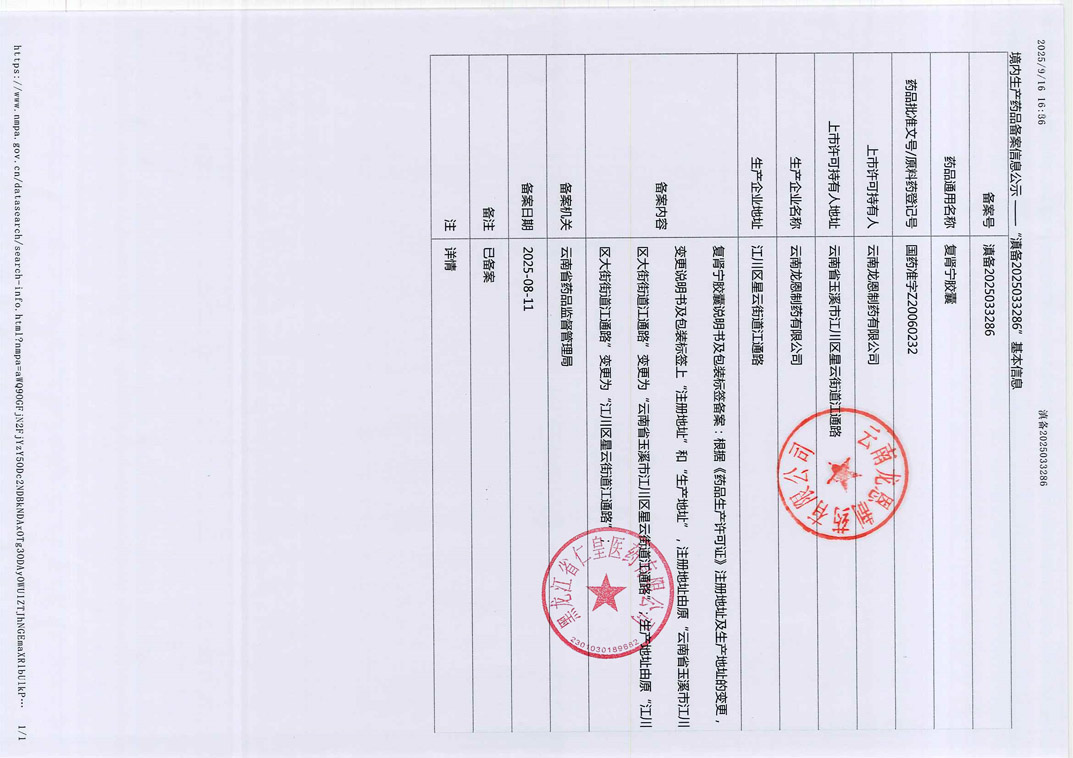 復(fù)腎寧膠囊云南龍恩制