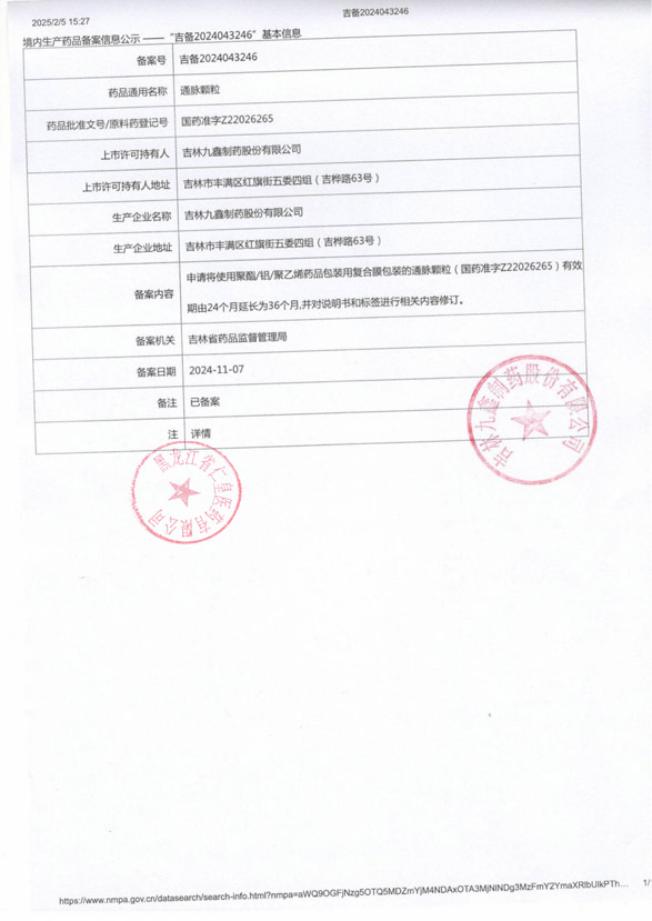 通脈顆粒吉林九鑫制藥