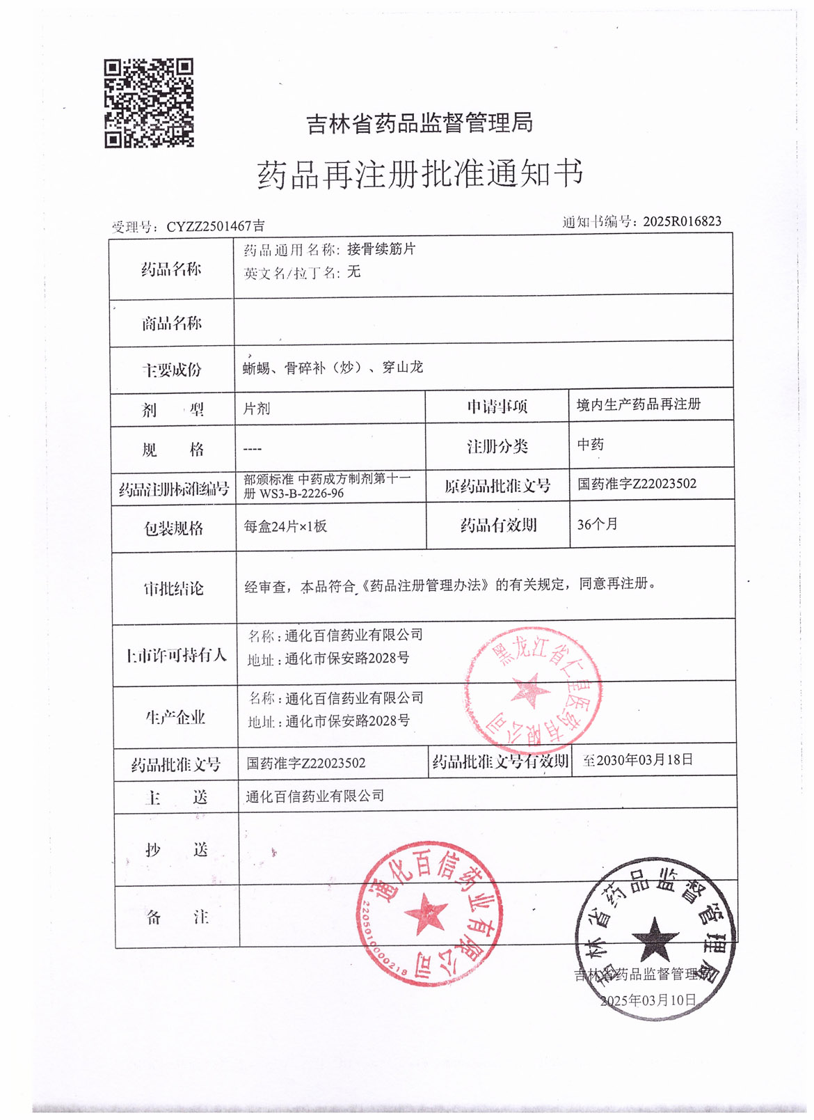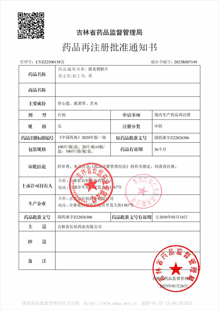 消炎利膽片吉林省長恒