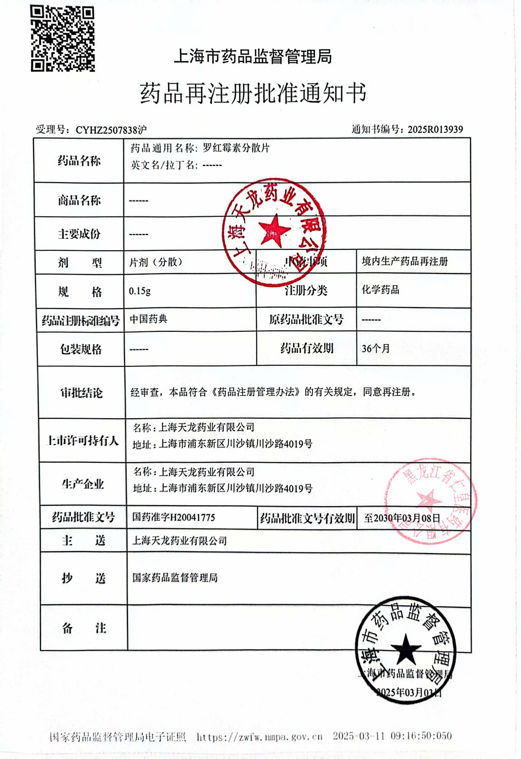 羅紅霉素分散片上海天