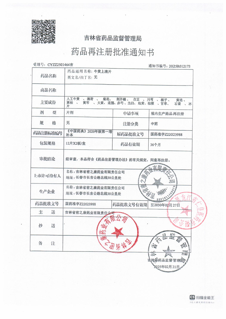 牛黃上清片吉林省密之