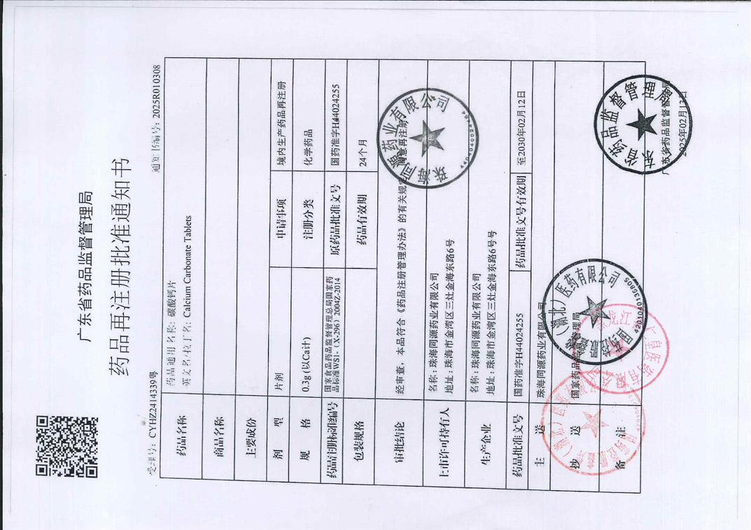 碳酸鈣片珠海同源藥業(yè)
