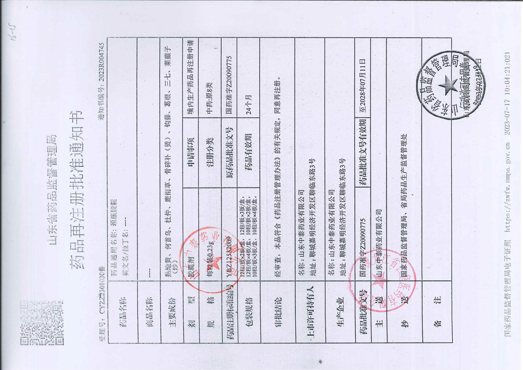 頸康膠囊山東中泰藥業(yè)